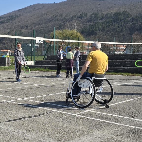 V četrtek 20.3.25 smo se Sebastjan Ferfolja in Branimir Črv iz Društva paraplegikov severne Primorske ter Mira in Jordan Jakin iz Športnega društva PARAGO Nova Gorica udeležili prireditve ob 70 obletnici CIRIUSa Vipava. Dogodek je predstavljal demonstracije raznoraznih športnih aktivnosti. Organizator dogodka se je potrudil in nam pripravil mizo za namizni tenis in igrišče za badminton. Kmalu je bila okrog namiznoteniške mize gručica nadebudnih šolarjev, ki so ob inštrukcijah Jordana skušali premagati Sebastjana.