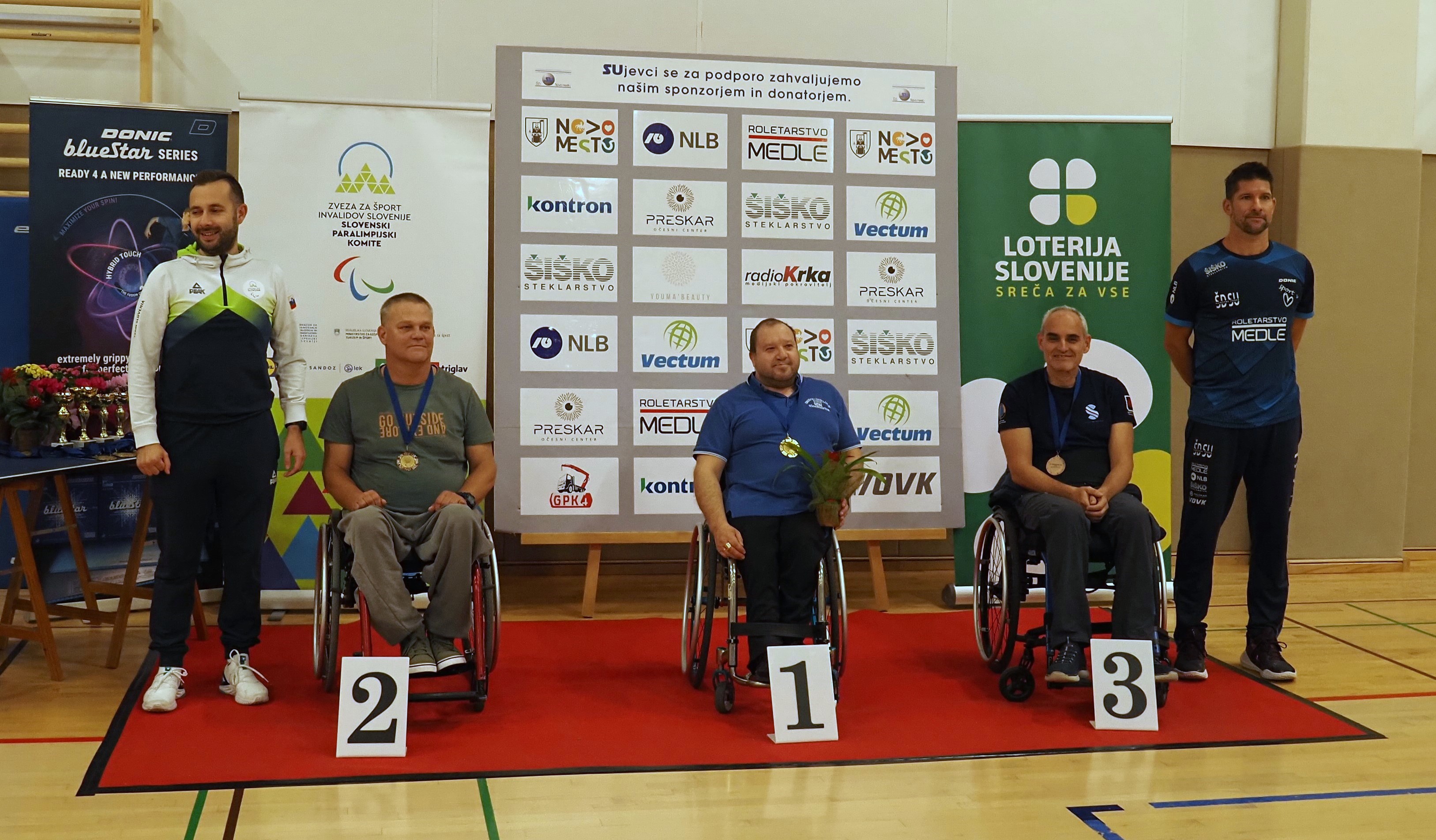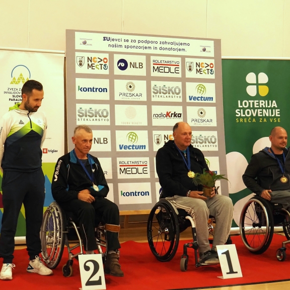 Kot že nekaj let zapored je DP v paranamiznem tenisu potekalo v Novo mestu v športnem centru Livada, tokrat v soboto 18.oktobra. Na tekmovanje smo se prijavili tudi štirje člani društva paraplegikov severne Primorske – Anja, Tomaž, Branko in Sebastjan. Še pred 6h zjutraj smo se odpravili od doma, ter po poti najprej pobrali Brankota, nato Tomaža z ženo in nato še Anjo, ki jo je tudi letos spremljala hčerka. Na prizorišče smo prišli dovolj zgodaj, da smo se pred uradnim začetkom primerno ogreli. Po uradni otvoritvi DP in himni pa se je začelo zares.