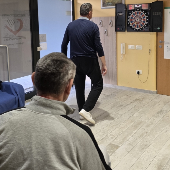 Ob 17:30 pa je začel zagrizen boj za zmago. Izmenično smo metali v tarčo, včasih tudi mimo in upali, da nam bo po sreči uspelo zmagati.