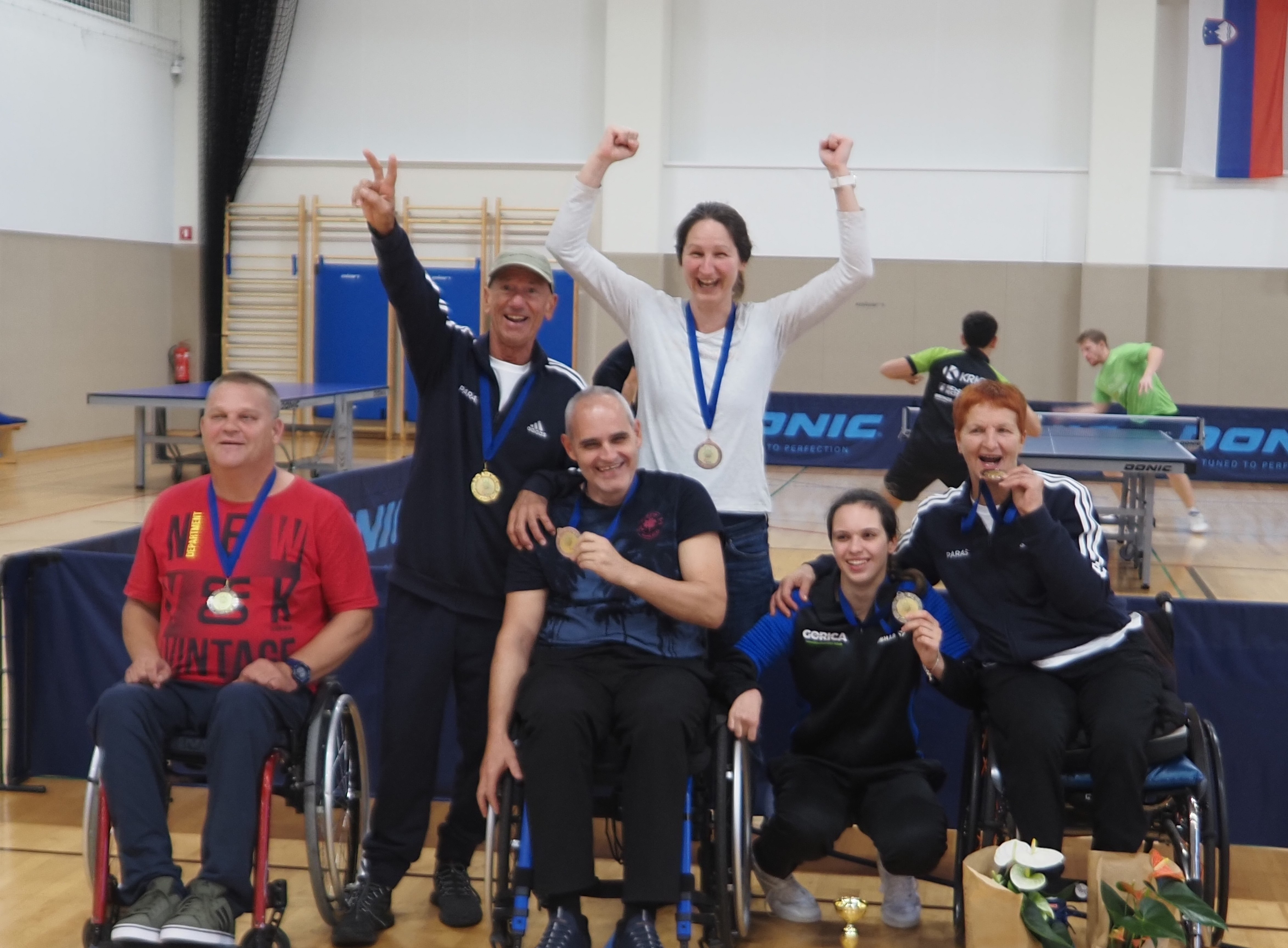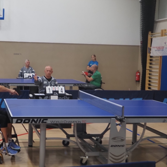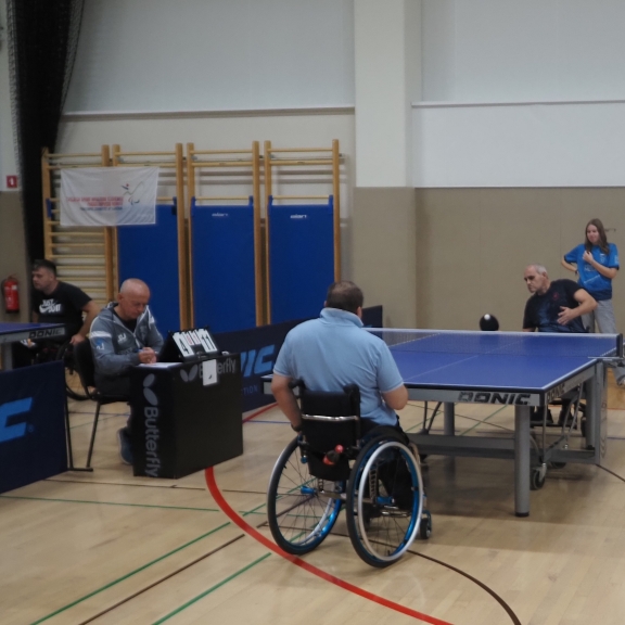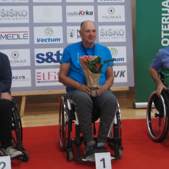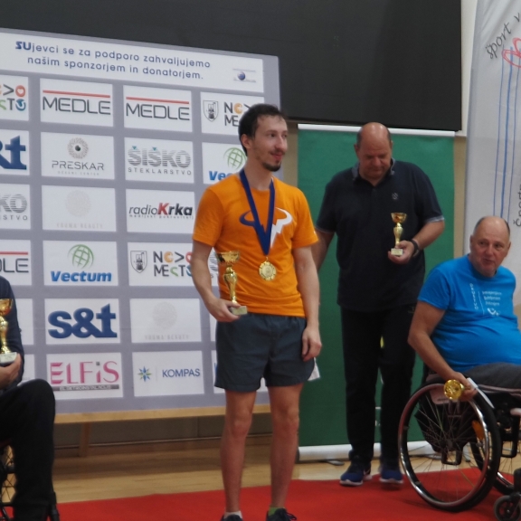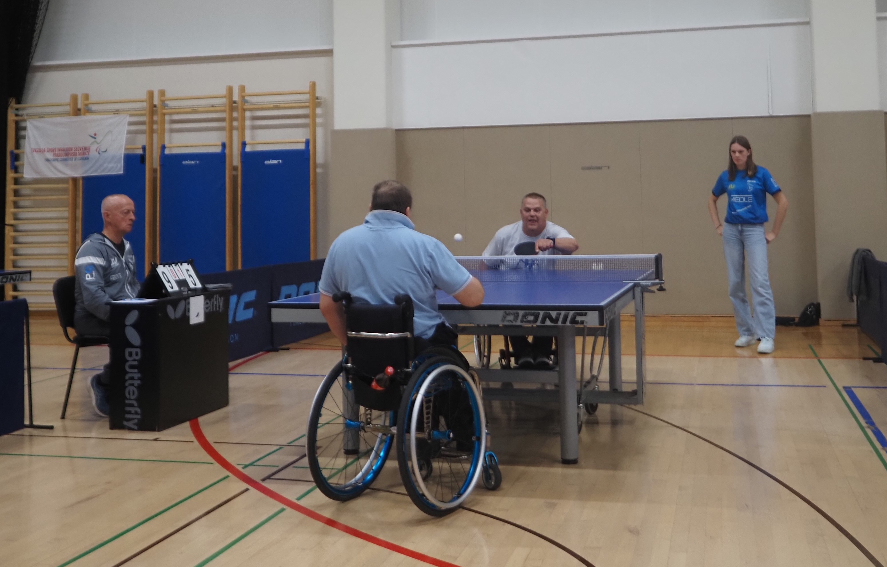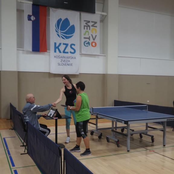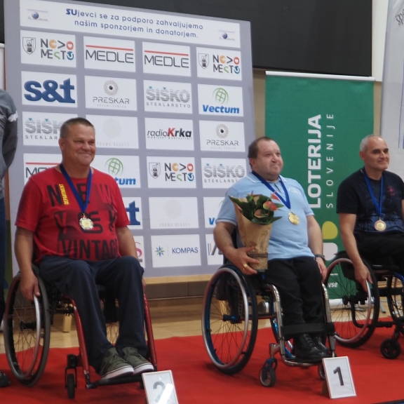 Tudi letos je državno prvenstvo v paranamiznem tenisu potekalo v Novem mestu v športnem centru Livada, tokrat v soboto 12.oktobra. Na tekmovanje smo se prijavili tudi trije člani Društva paraplegikov severne Primorske – Anja, Tomaž in Sebastjan. Še pred šesto uro zjutraj smo se odpravili od doma, ter po poti najprej pobrali Tomaža z ženo in nato še Anjo, ki jo je tudi letos spremljala hčerka. Seveda nas je spremljal tudi naš trener Slavko. Na prizorišče smo prišli dovolj zgodaj, da smo se pred uradnim začetkom primerno ogreli. Po uradni otvoritvi državnega prvenstva, himni in nastopu novomeških mažoretk, se je začelo zares.