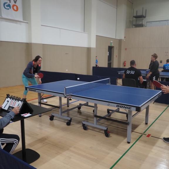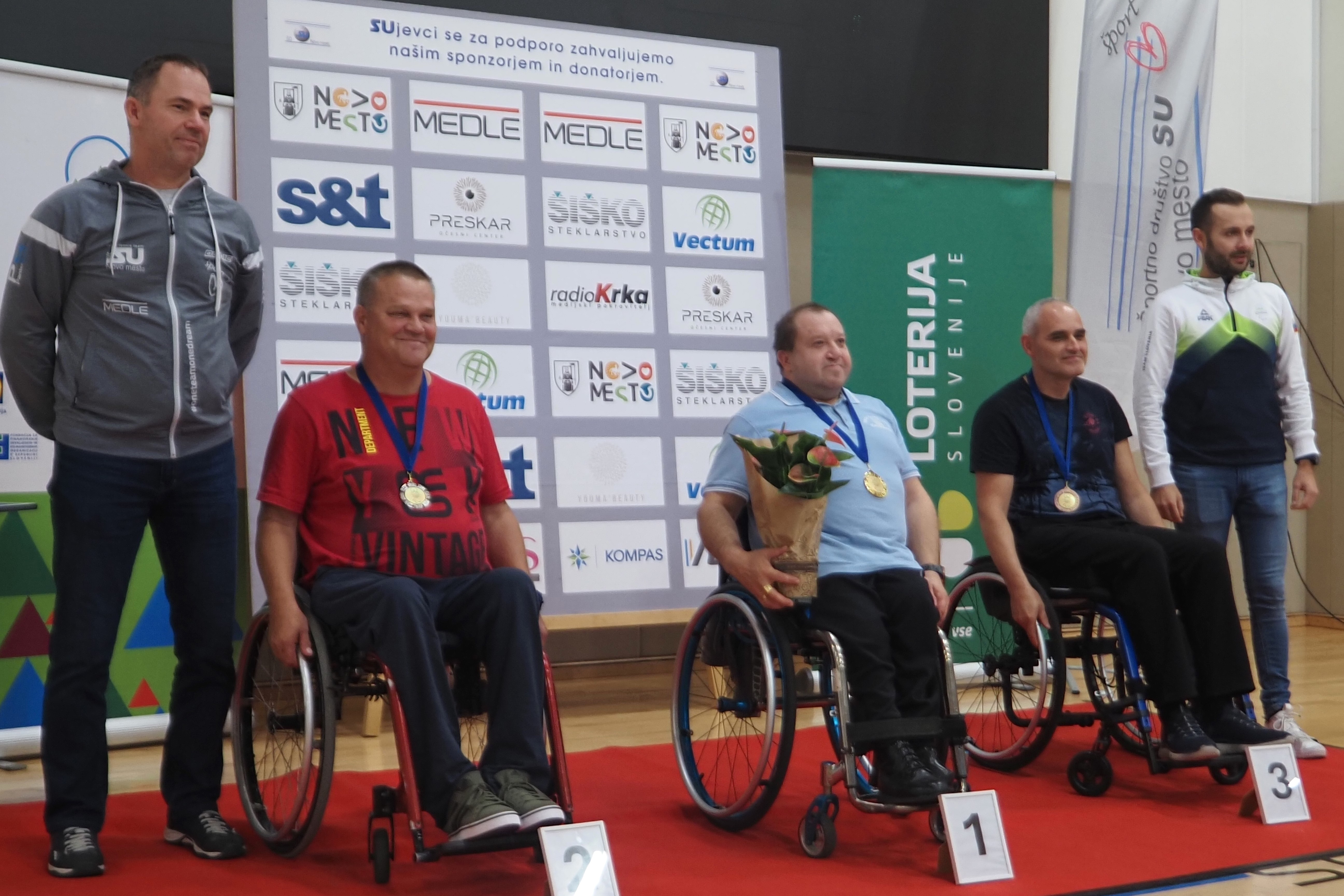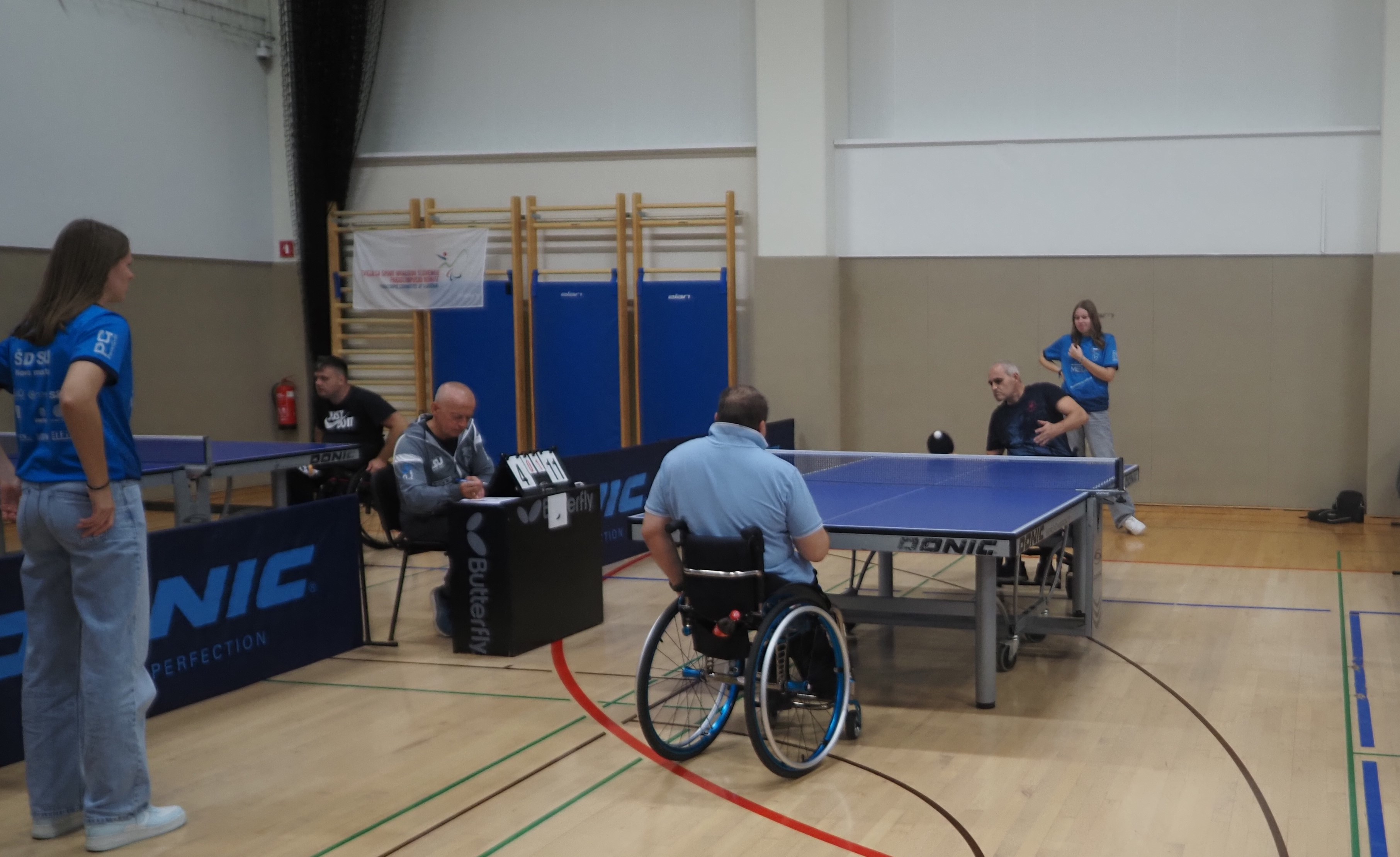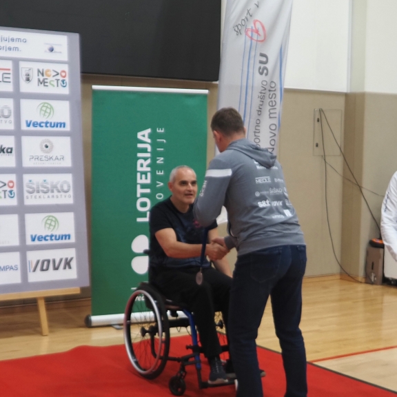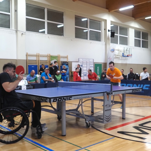 Tudi letos je državno prvenstvo v paranamiznem tenisu potekalo v Novem mestu v športnem centru Livada, tokrat v soboto 12.oktobra. Na tekmovanje smo se prijavili tudi trije člani Društva paraplegikov severne Primorske – Anja, Tomaž in Sebastjan. Še pred šesto uro zjutraj smo se odpravili od doma, ter po poti najprej pobrali Tomaža z ženo in nato še Anjo, ki jo je tudi letos spremljala hčerka. Seveda nas je spremljal tudi naš trener Slavko. Na prizorišče smo prišli dovolj zgodaj, da smo se pred uradnim začetkom primerno ogreli. Po uradni otvoritvi državnega prvenstva, himni in nastopu novomeških mažoretk, se je začelo zares.