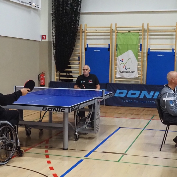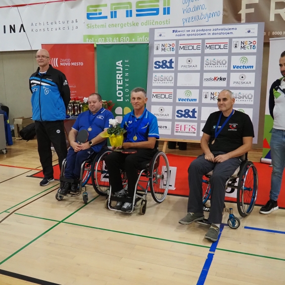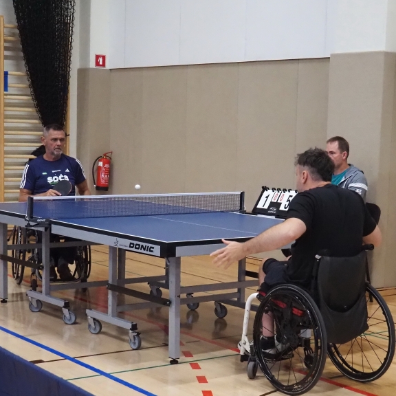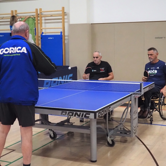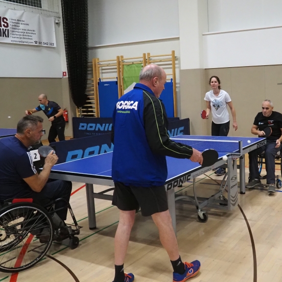Prvenstva smo se prvič udeležili tudi člani Društva paraplegikov severne Primorske pod okriljem Namiznoteniškega kluba Gorica in našega trenerja Slavka Pavlina.