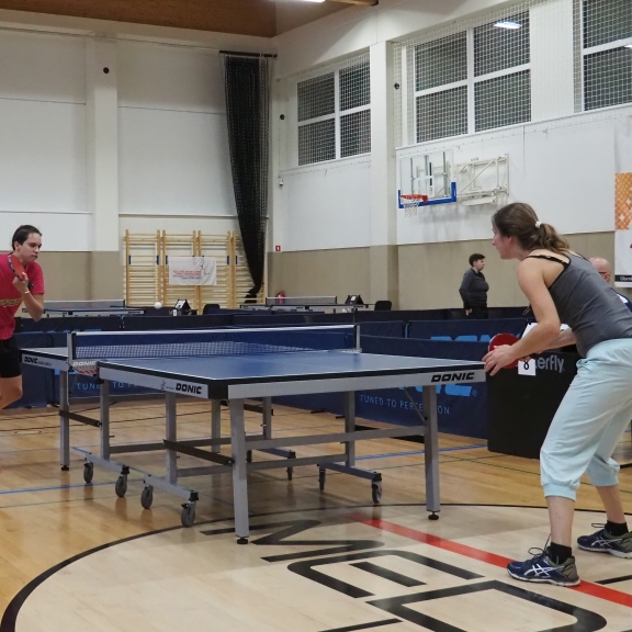Po ogrevanju in uradni otvoritvi prvenstva pa so se začeli pravi boji. Najprej smo igrali v skupinah, vsak z vsakim, oziroma na izpadanje odvisno od številčnosti skupine. Ta tekmovanja so potekala do kosila. Po obilnem kosilu pa je bilo na vrsti še odprto tekmovanje, v katerem so nastopali vsi tekmovalci skupaj in igrali na izpadanje do končnega zmagovalca turnirja, ki je tokrat postal paraolimpijec Luka Trtnik. V ženski konkurenci je po trdem boju slavila Barbara Meglič, odlična druga pa je bila mlada Ajdovka Karin Praček, ki je prav tako članica Namiznoteniškega kluba Gorica.