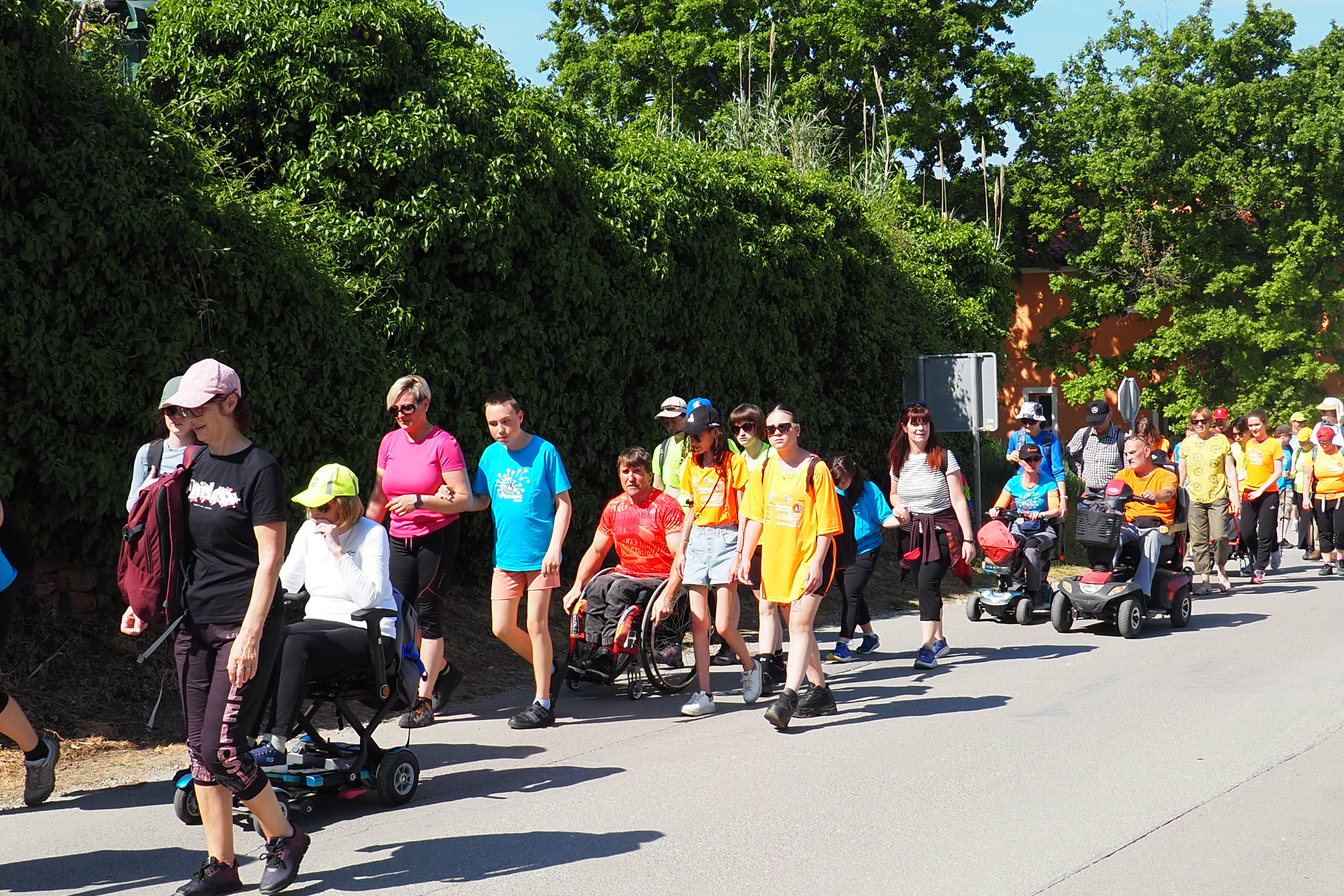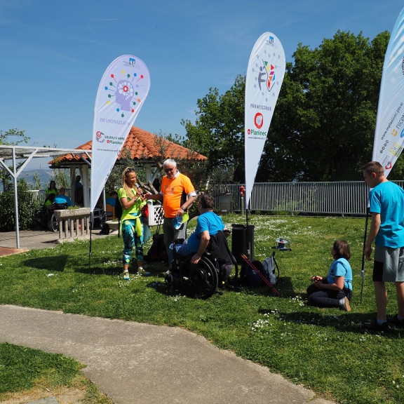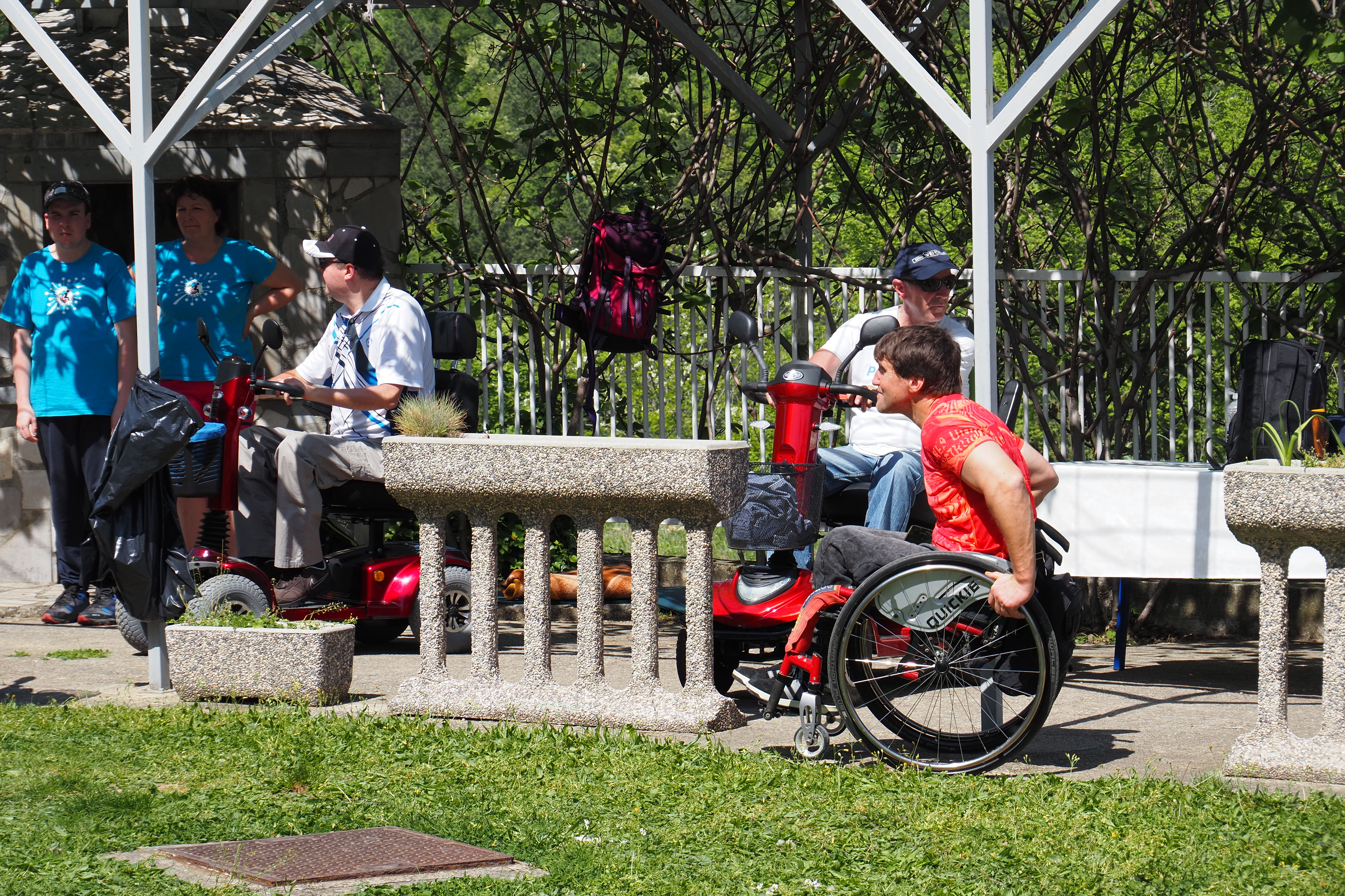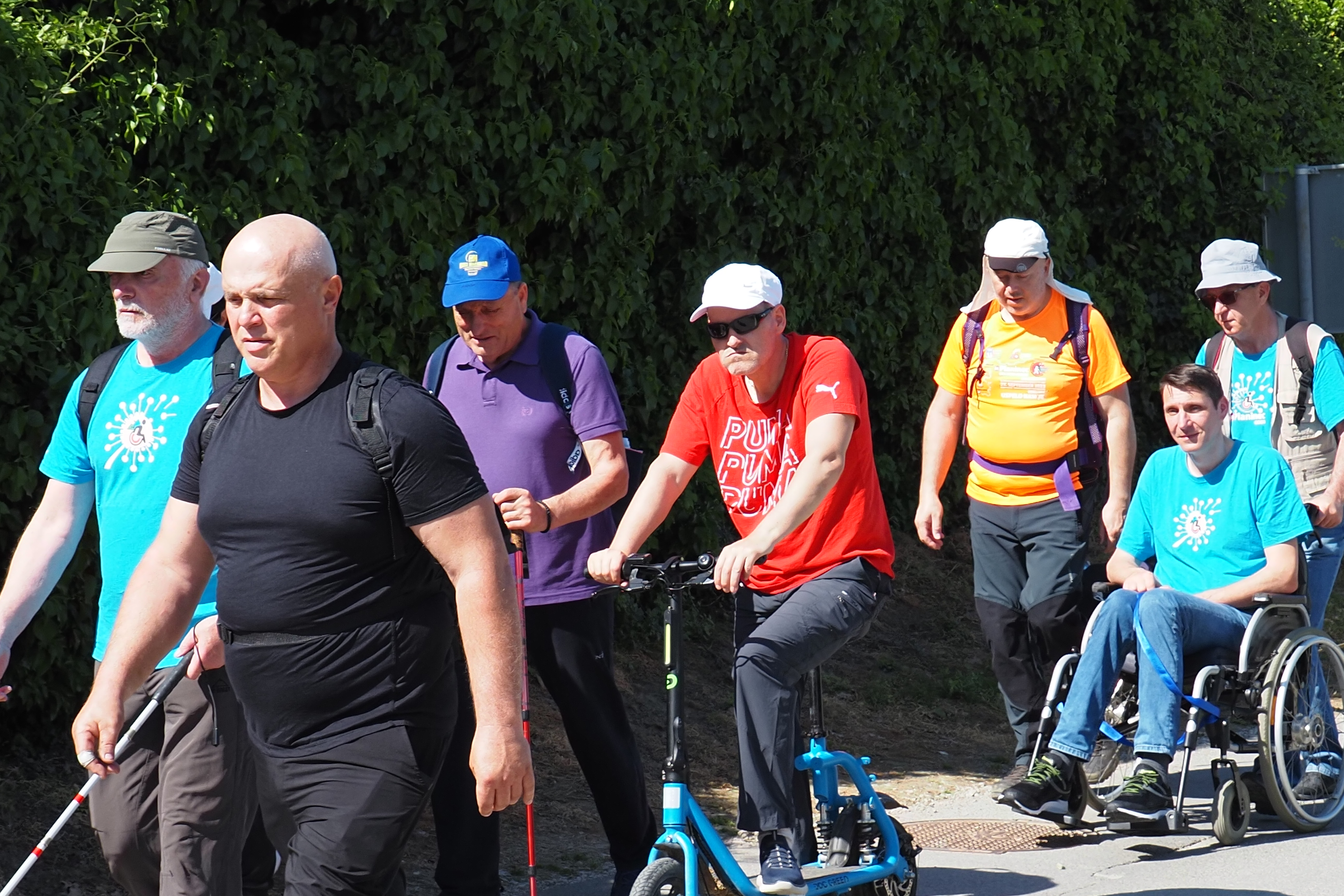 Zbor težje gibalno oviranih je bil ob 10h pri gasilskem domu v Hrovatinih, od koder smo se po začetnem slikanju v družbi spremljevalcev, prostovoljcev in mladih iz celega sveta podali proti Elerjem. Kljub veliki skupini, skupaj se nas je zbralo blizu 200, počasnemu tempu in rednih postankih v senci, kjerkoli je bila na voljo je pot hitro minila in kmalu smo se znašli na Elerjih.