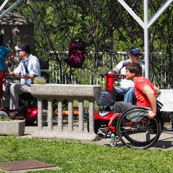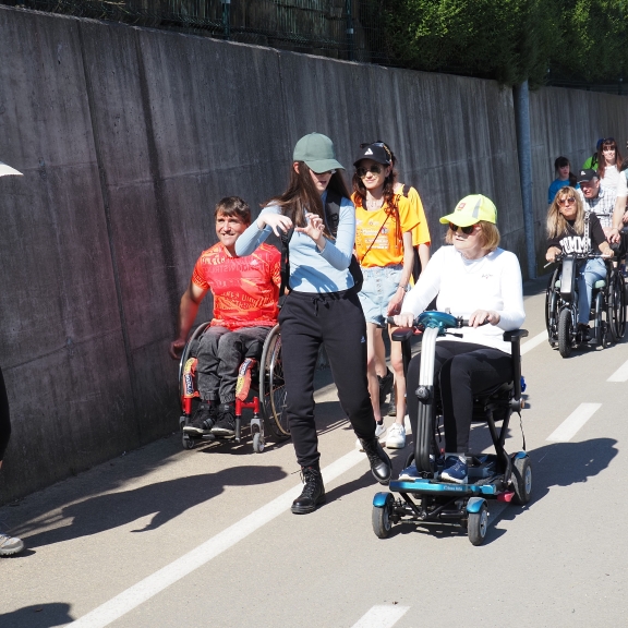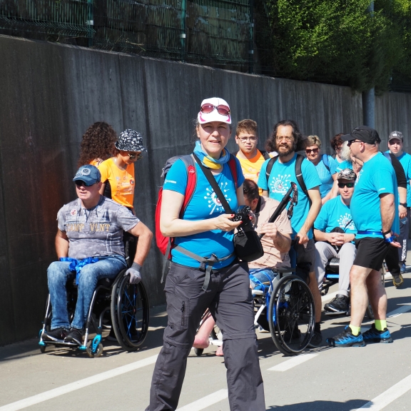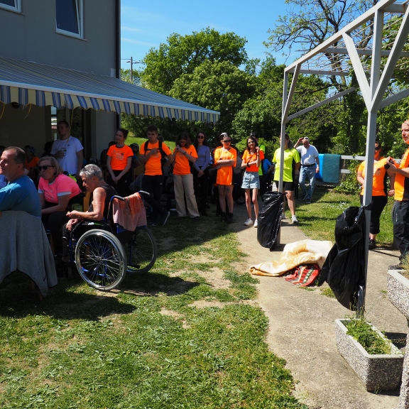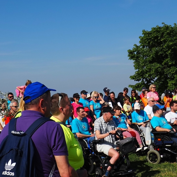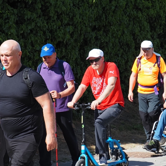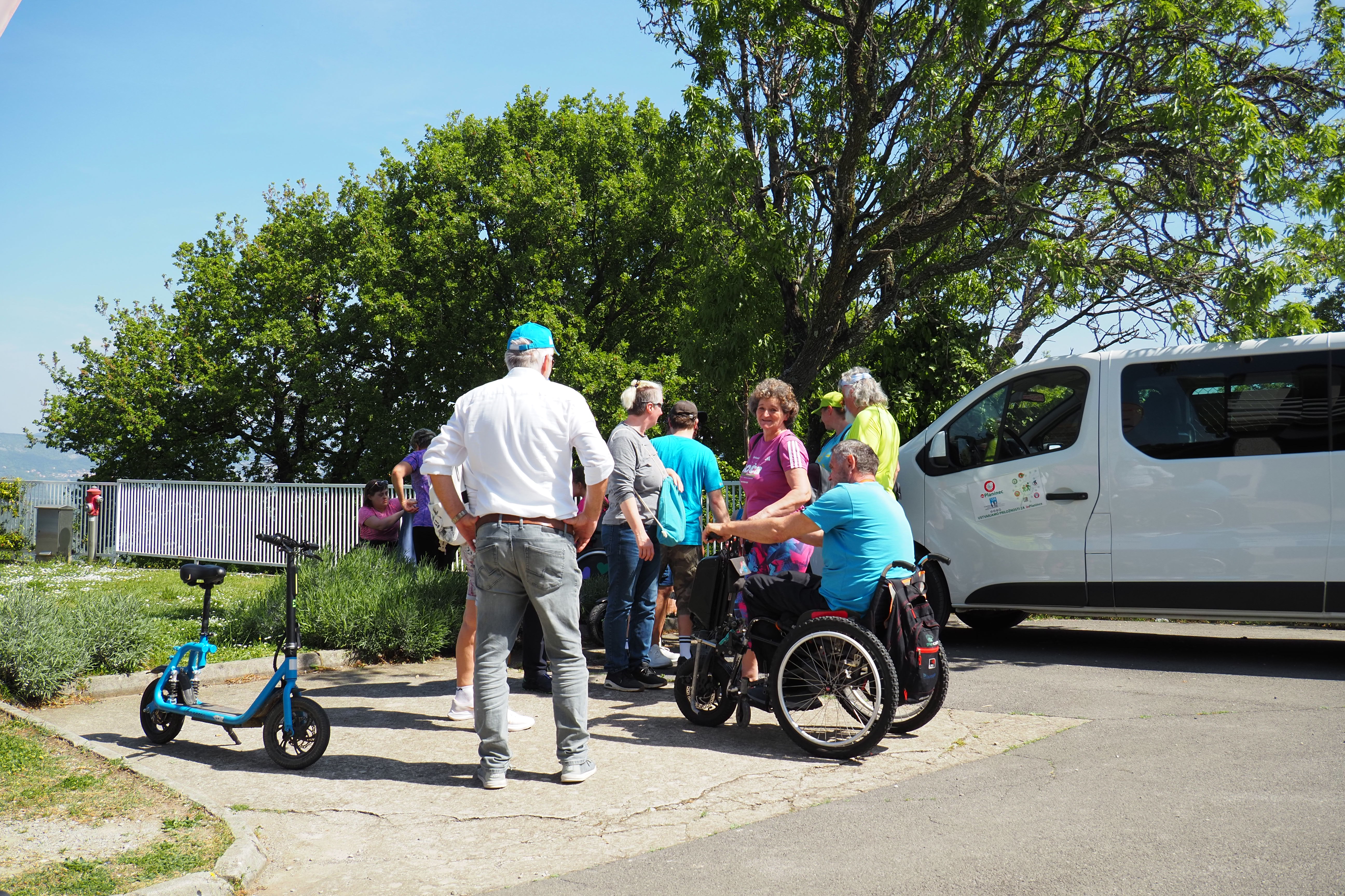 Zbor težje gibalno oviranih je bil ob 10h pri gasilskem domu v Hrovatinih, od koder smo se po začetnem slikanju v družbi spremljevalcev, prostovoljcev in mladih iz celega sveta podali proti Elerjem. Kljub veliki skupini, skupaj se nas je zbralo blizu 200, počasnemu tempu in rednih postankih v senci, kjerkoli je bila na voljo je pot hitro minila in kmalu smo se znašli na Elerjih.