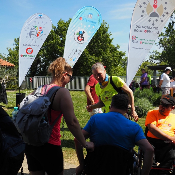 Ko je na cilj prišla še skupina planincev, ki je pohod štartala iz Ankarana, so sledili govori podžupana in predstavnikov različnih invalidskih organizacij, ter zahvale vsem udeležencem in prostovoljcem. Ker je današnji pohod potekal v Evropskem tednu mladih, posebno pozornost posvečamo mladim in mladinskemu delu – aktivni za prihodnost. Ker nas je spremljala kar lepa skupina mladih iz celega sveta, so za konec pozornost in besedo namenili še njim. Vsak od njih nas je pozdravil, se predstavil in povedal od kod prihaja.