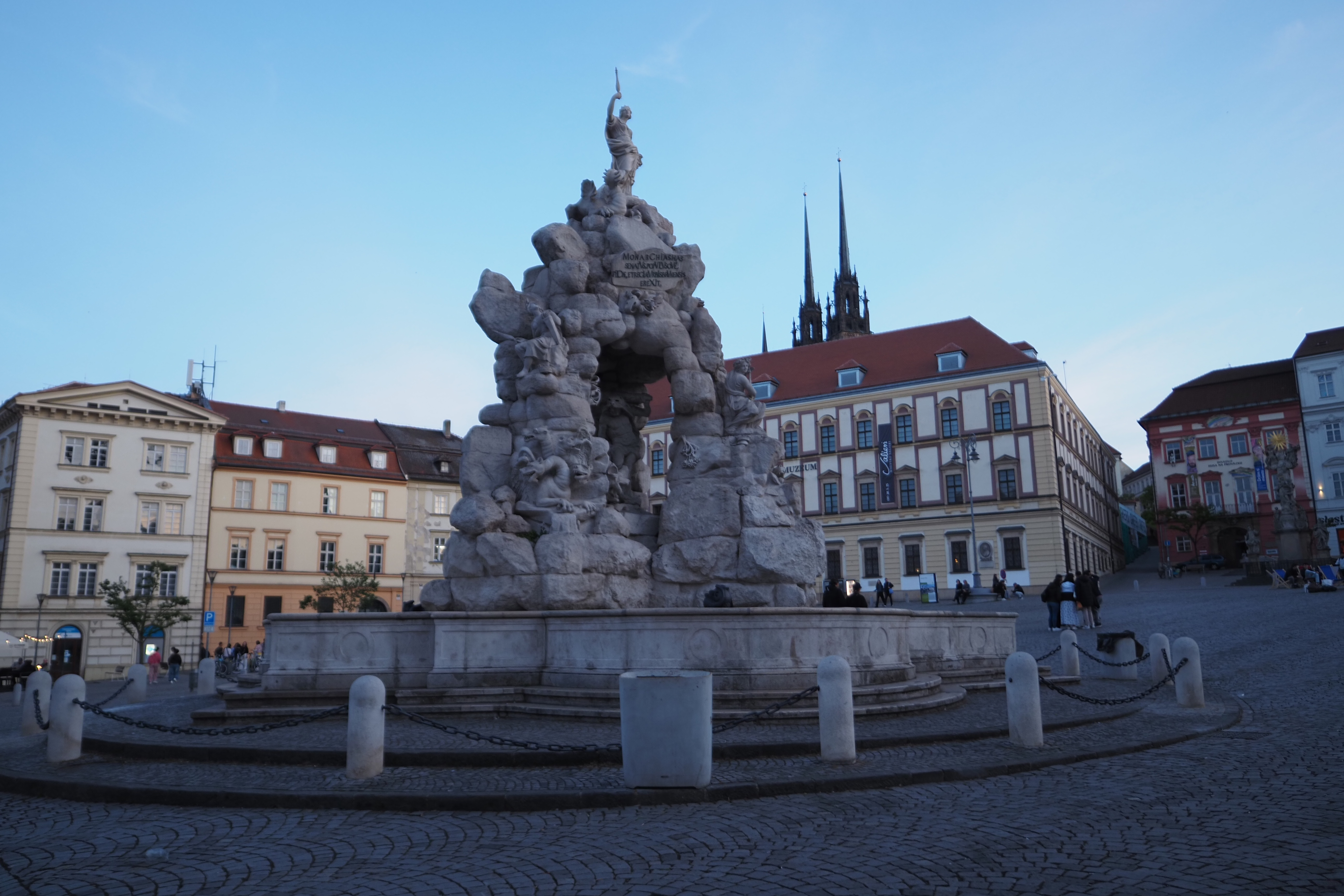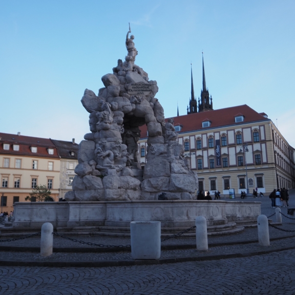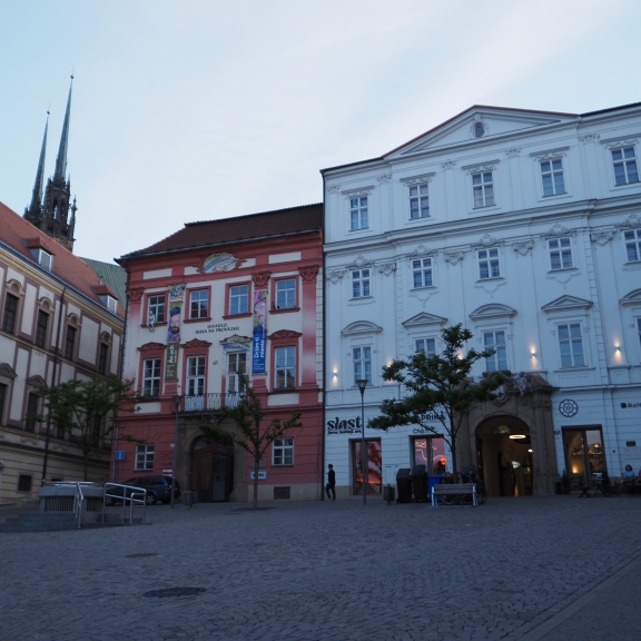 Stari center Brna je precej skoncentriran, tako smo se lahko v večernem siju sprehodili do mestne hiše, kjer v preddverju visi nagačeni krokodil legendarni »Zmaj iz Brna«. Takoj za tem pa prispemo, do drugega najpomembnejšega trga »Zelný trh« ali' Zelenjavna tržnica. Sredi trga je velik baročni vodnjak Parnas. Zelný trh je v uporabi že od leta 1190, še preden je bilo mesto ustanovljeno. Prvotno je bil to splošni trg. Kasneje se je specializiral za zelenjavo in sadje. Na enem mestu deluje že 850 let, pod imenom Zelný trh pa 700 let. Delovanje ni bilo nikoli prekinjeno in se je nadaljevalo tudi v času komunizma. Tržnica je najstarejša neprekinjeno delujoča tržnica z zelenjavo ,rastlinami in sadjem v srednji Evropi.