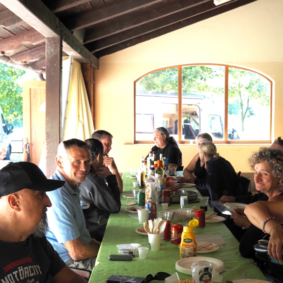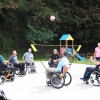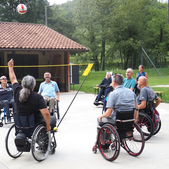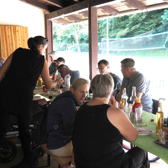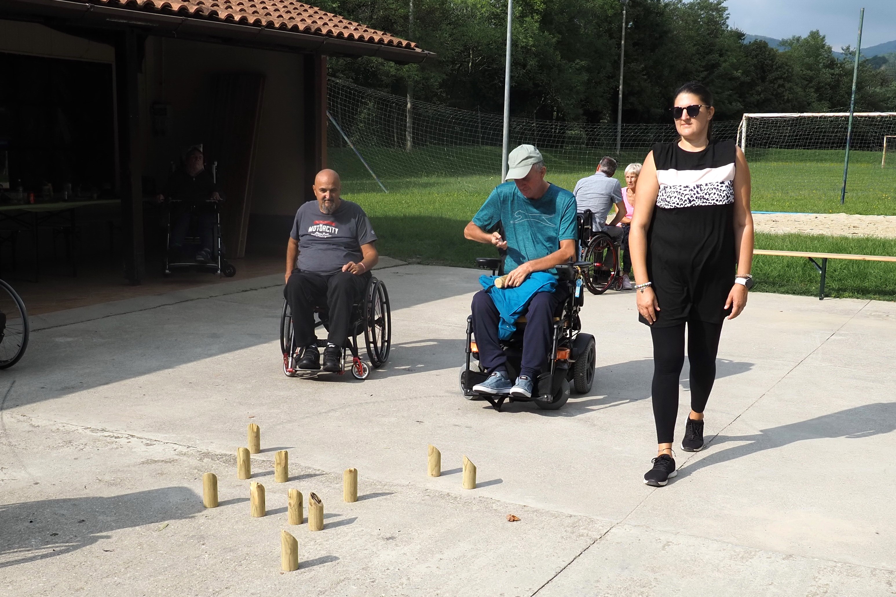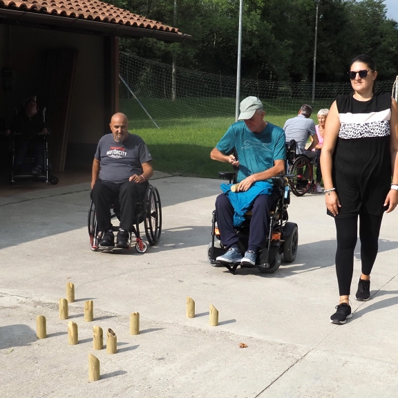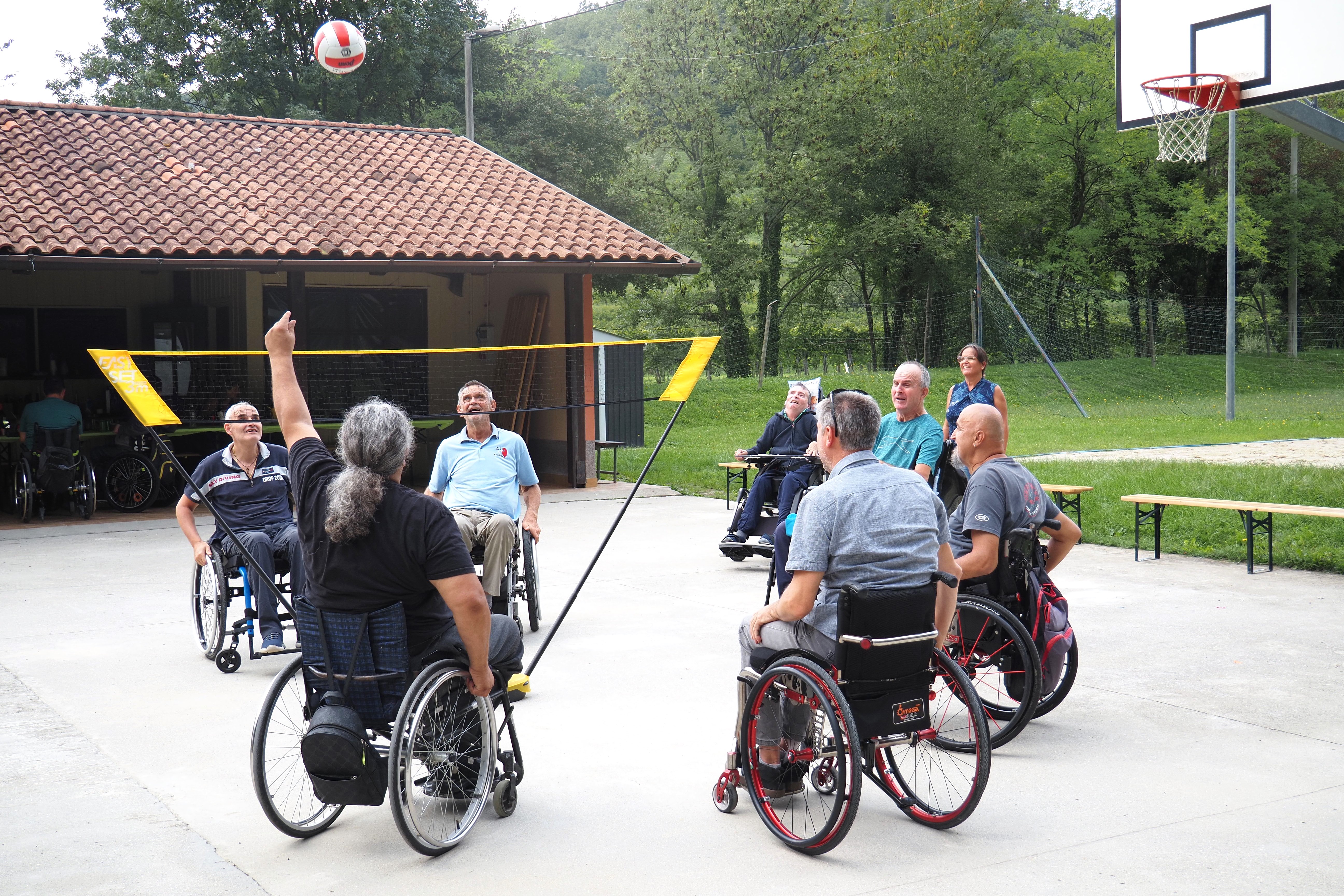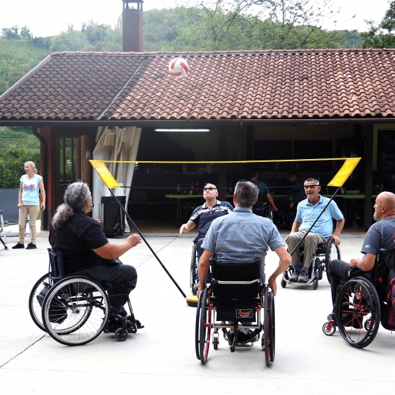 V mirnem kotičku Goriških Brd stoji igrišče »Čelo« kjer smo se zbrali člani Društva paraplegikov severne Primorske na našem jesenskem srečanju. Drugo septembrsko nedeljsko dopoldne ni izgledalo nič kaj obetavno. Temno in oblačno vreme ni kazalo na nič kaj prijeten dan. Vendar tako kot smo se člani drug za drugim počasi zbirali pod nadstreškom našega prizorišča, tako so temni oblaki izginjali in prav kmalu je posijalo sonce, ki je na trenutke tako močno pripekalo, da smo se morali umakniti v senco. Ob kavi, rogljičkih in raznih (beri tekočih) domačih dobrotah, smo se vsi nabrali na kup in že kmalu je zadišalo po žaru. Naš mojster žara se je tokrat odločil za dva hoda, enega opoldne in enega kasneje. To se je izkazalo za dobro odločitev, saj se je bilo po prvem obroku potrebno malce razmigat in pretrest naše polne želodčke, da bi sploh bili pripravljeni na še eno rundo dobrot. Ta čas smo izkoristili za prijeten klepet, tisti ki nam roke kolikor toliko služijo smo se poskusili v igranju odbojke na vozičkih in poskrbeli za obilico smeha, kajti redno smo skrbeli za rekreacijo naših spremljevalcev, ki so neumorno pobirali žogo. Ko smo se utrudili, je prišla na vrsto igra Mölkky, ko z lesenim količkom zbijaš prav tako lesene oštevilčene količke in seštevaš rezultat do končne zmage. Pri tej igri so v ospredje stopili tetraplegiki, ki so se odlično odrezali, kljub nekoliko prirejenim pravilom.