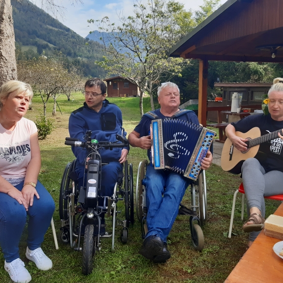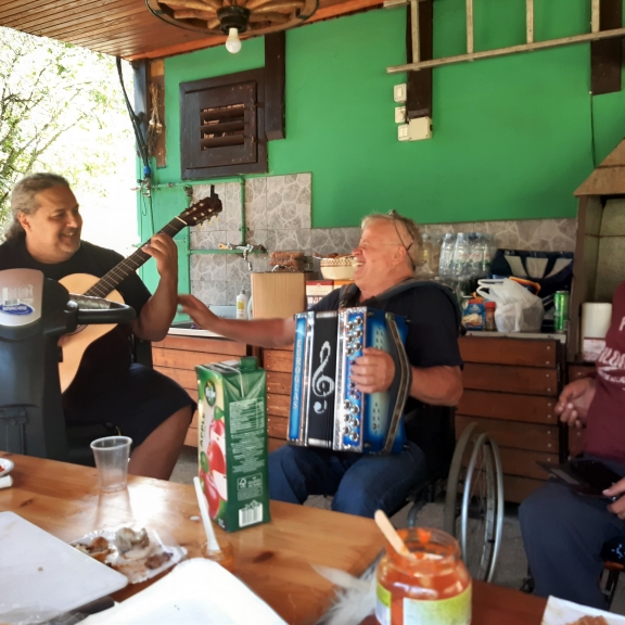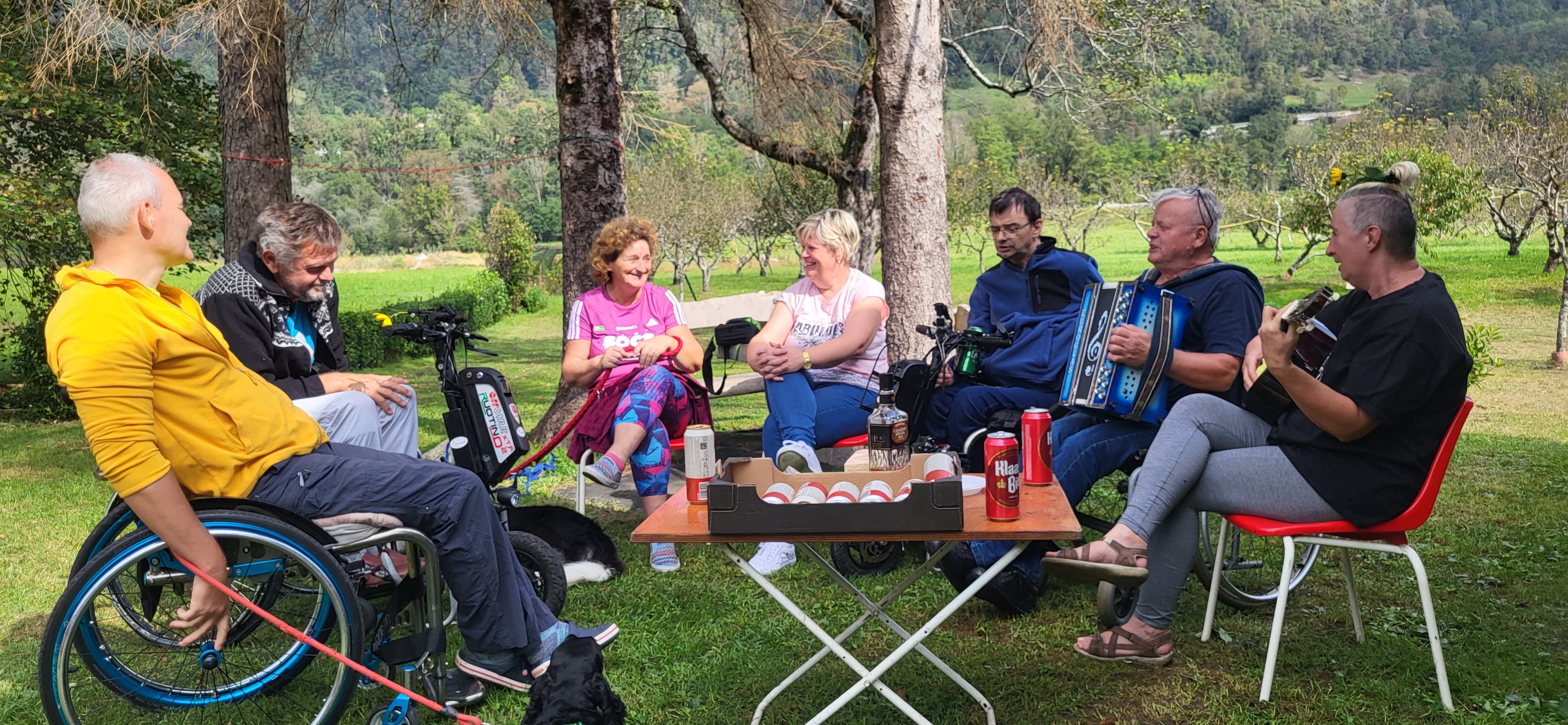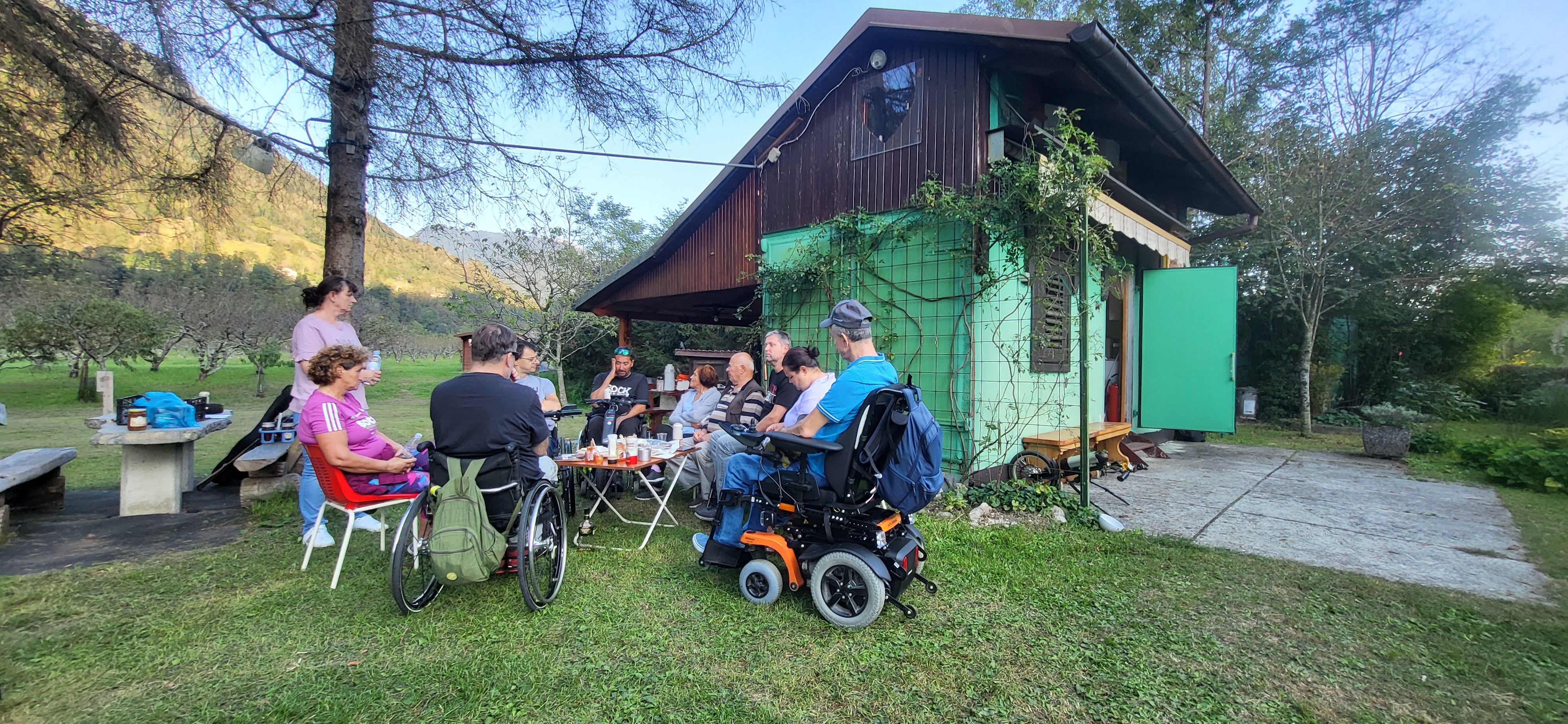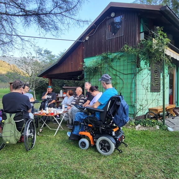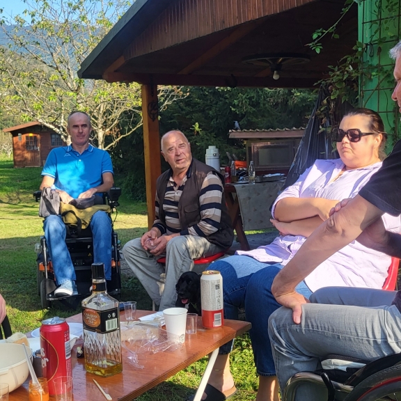 V soboto 30. septembra je v vasi Gabrje pri Tolminu že zgodaj zadišalo po žaru. Člani Severnoprimorskega društva paraplegikov smo namreč organizirali piknik na prečudovitem Klavdijevem vikendu. Skupaj s spremljevalci se nas je zbralo osemnajst . Predpasnike sta si nadela Igor in Slavojka in pridno skrbela, da se žar ni ohladil in da ni nihče bil lačen. Medtem ko sta žar mojstra čarala na svoji postaji smo se drugi zabavali s kitarami in harmoniko in kaj kmalu ustvarili vzdušje prave veselice kjer so plesali in peli tudi najbolj sramežljivi. Nekateri smo se preizkusili tudi v streljanju z zračno puško. Ker se je točno takrat v Kobaridu dogajal Jestival (festival kulinarike) smo izkoristili priliko in s kombijem skočili po tradicionalne Kobariške štruklje. Po sladici smo druženje nadaljevali do trde teme potem pa se počasi odpravili vsak na svoj dom. Piknik je uspel in že zdaj vabimo vse člane na naslednjega - več nas bo, boljši bo!