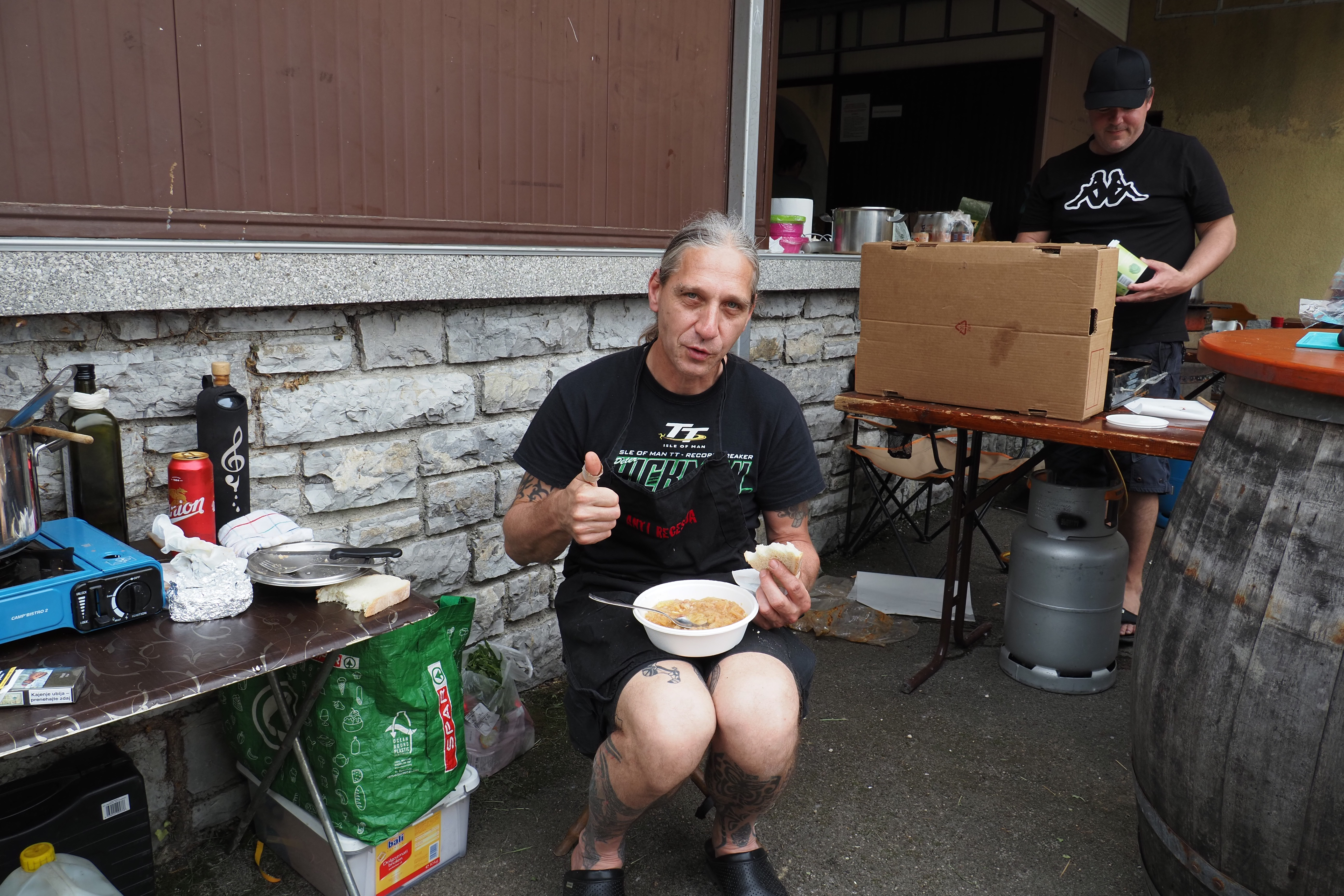 Jota številka ena je prišla iz obalno kraškega konca in bila taka, kot je treba: brez velikih skrivnosti, z občutkom in ščepcem zdrave previdnosti pred mastnim. »Klasične sestavine, malo pancete, ne dosti – ker ne maram, da je preveč masna,« je razložil kuhar. Raje manj kot preveč, tako da lahko poješ še en krožnik. Njegova filozofija je bila jasna: enim je bolj všeč mastna jota, drugim manj mastna – »jaz delam tako, kot doma, delam vedno enako.« Kuhali so približno dve uri in pol. Tehnologija ekonom lonca ni bila izkoriščena, čeprav bi šlo hitreje – »ampak mi nismo imeli zaprtga pokrova.« Vse je bilo bolj klasično: ekonom lonec, z odprtim pokrovom in počasnim, zvestim mešanjem. Poseben pristop pa je imel do fižola in krompirja. Fižol? »Mal ga zmečkam, ne dam ceuga noter – ni zmiksan, sam tku, da ni čist cel. Boljši je tku.« Krompir? Tudi malo poseben postopek. Najprej skuhaš, potem ga s kuhalnico malo razdrobiš, da niso vsi kosi enaki: »En pride večji, en manjši, pa mal ga zdrobim, da se razgubi.« Dodal je tudi prepraženo čebulo in malo pancete – »sam glih mal za okus, da ni preveč.« In za barvo? Seveda – »mal mlete paprike, tko dobi boljši izgled.« Njegova jota je bila preprosta, domača, in čisto po njegovem okusu: nič razkošnega, ampak prav narejena. In če fižol ni bil čisto cel, tudi zgodba ni – ampak je bila ravno prav zmečkana, da je šla lepo na žlico.