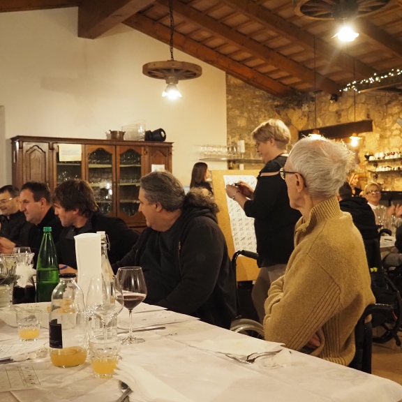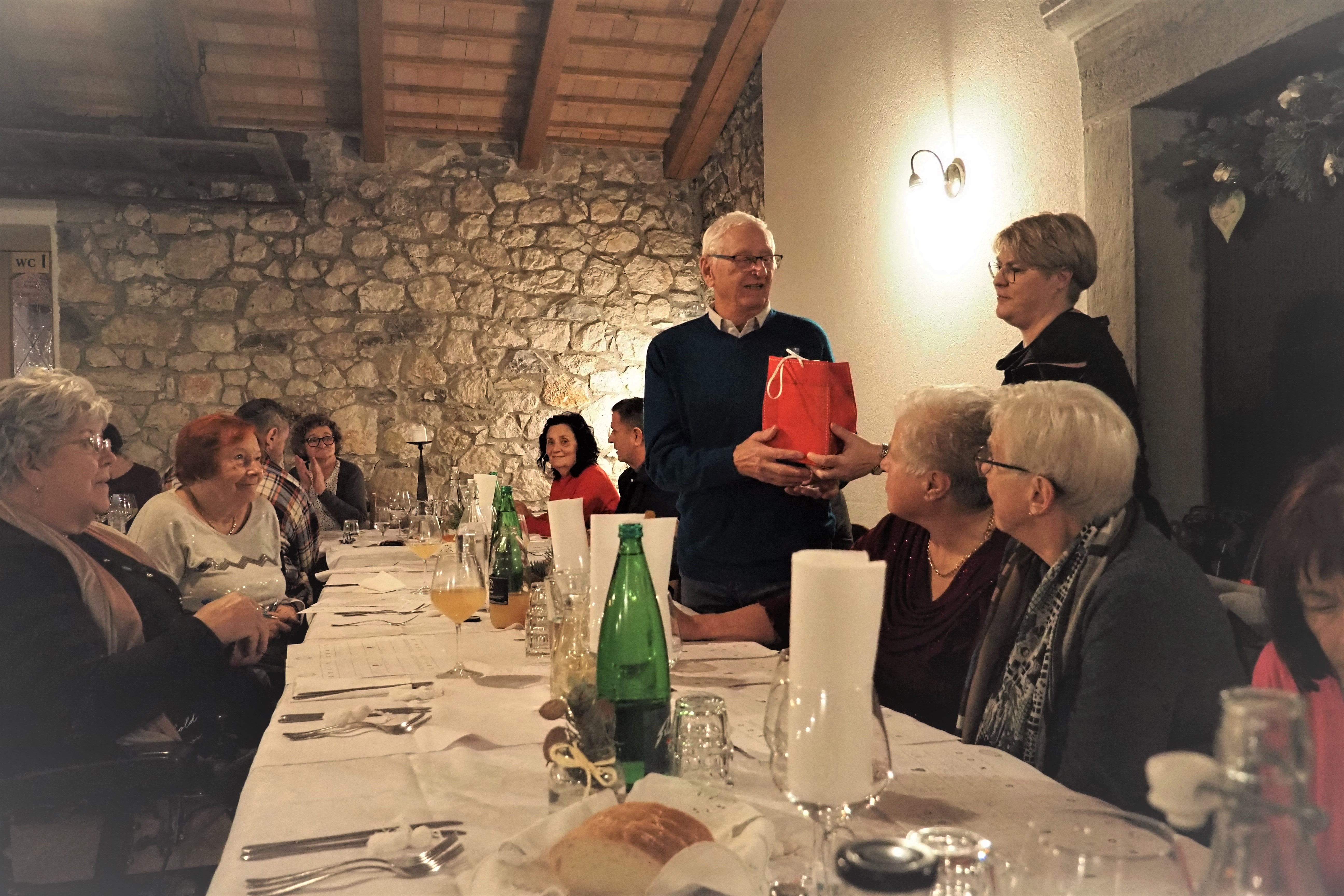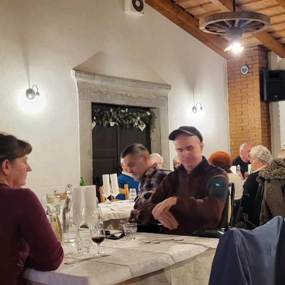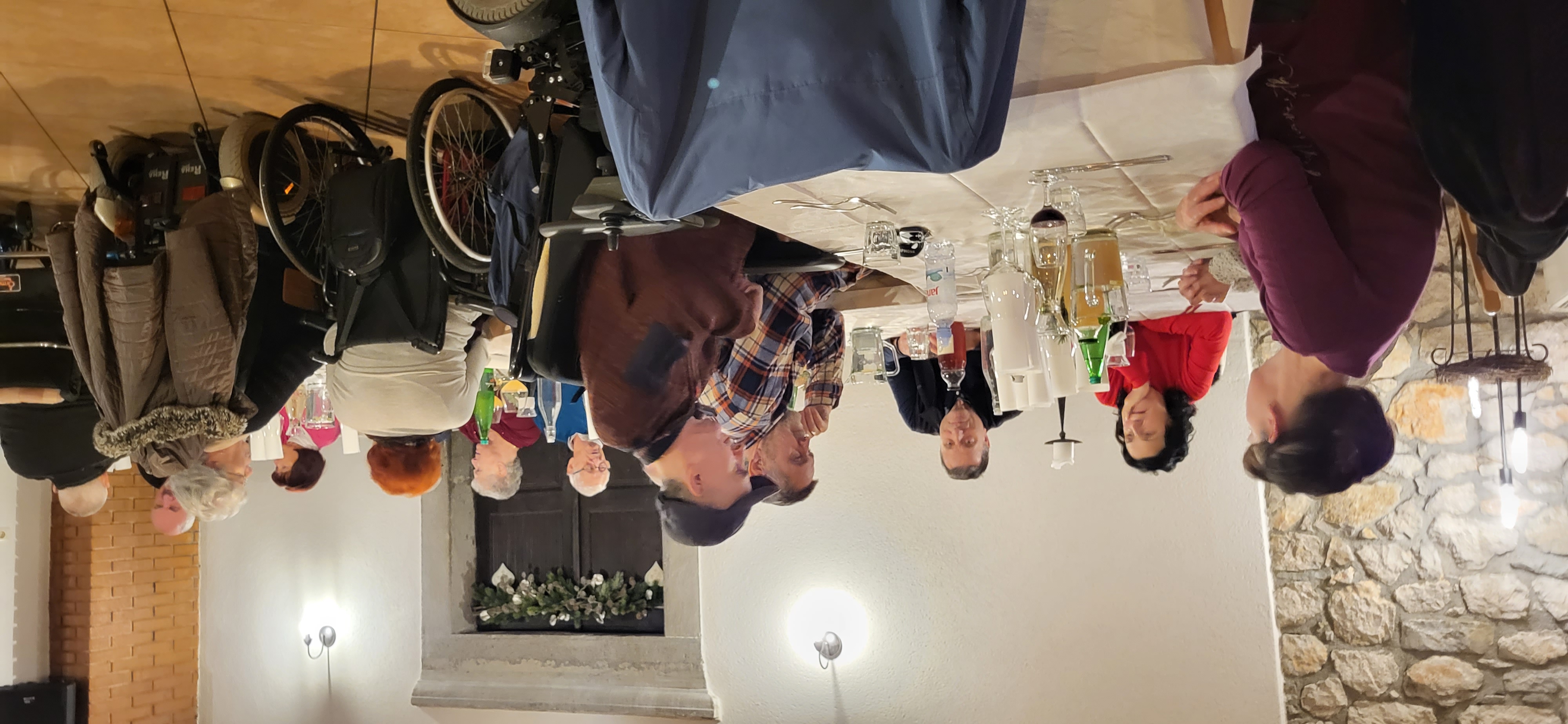 Priprave na letošnje Božične in Novoletne praznike so že v polnem teku. Vse se že sveti in utripa in vabi k praznovanju in druženju. Zato smo se na društvu zopet odločili da se zberemo in pripravimo zadnje srečanje letos - predbožično večerjo. Tokrat smo obiskali turistično kmetijo Malovščevo v Vitovljah. Zbralo se nas je veliko, malo manj kot štirideset. Prijaznost in dobrosrčnost gostiteljev smo čutili takoj ko smo prestopili prag. Odražala pa se je tudi na krožnikih kajti hrana je bila resnično okusna. V prelepem ambientu smo druženje popestrili s tradicionalno tombolo, ki je letos postregla z izjemno bogatimi nagradami. Naš član Jordan pa je s svojo harmoniko ob spremljavi dveh kitar poskrbel, da je se je rajanje in druženje zavleklo pozno v noč.