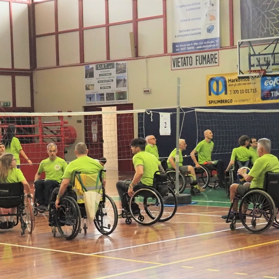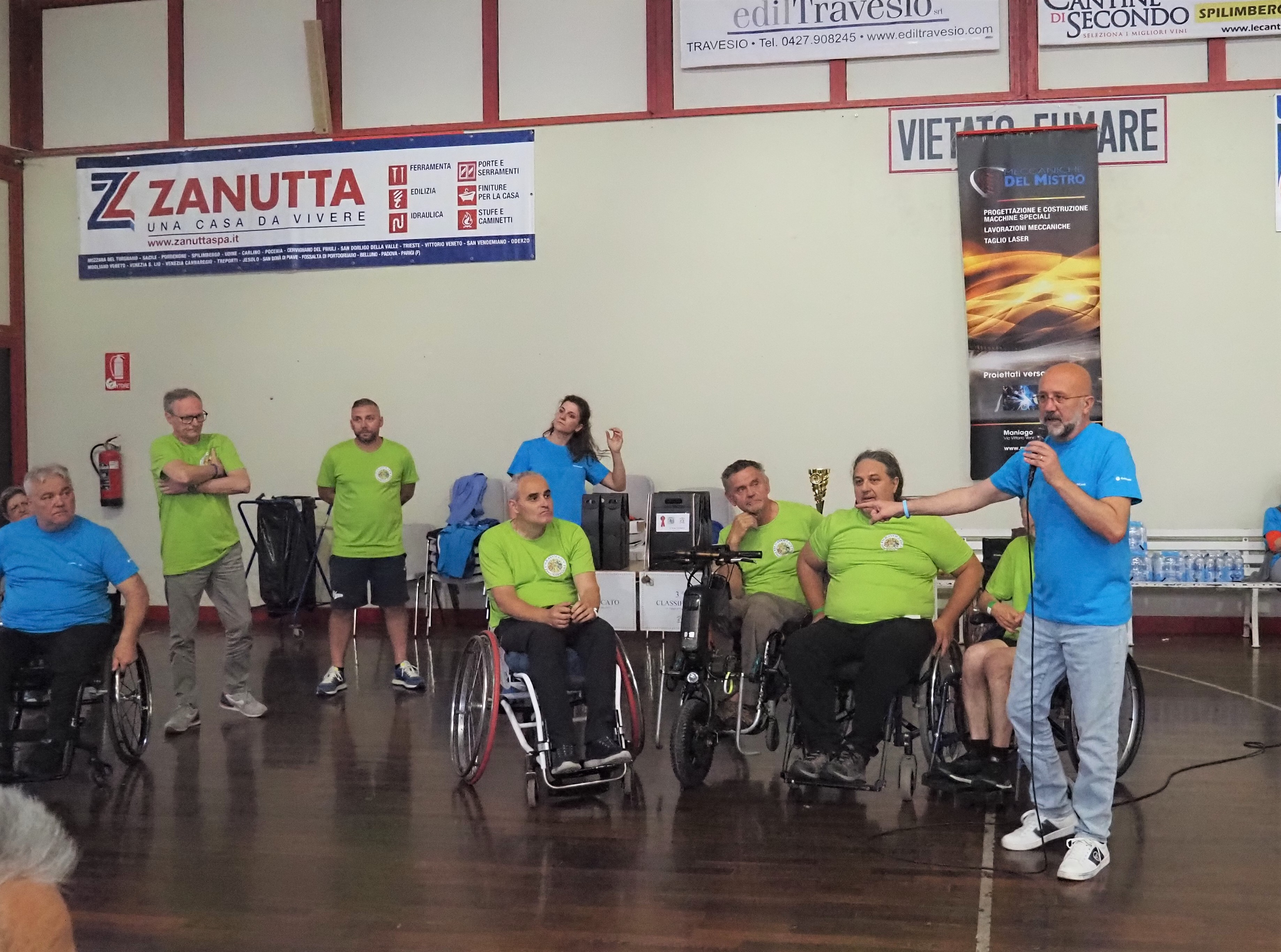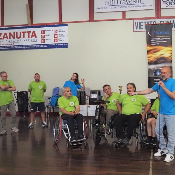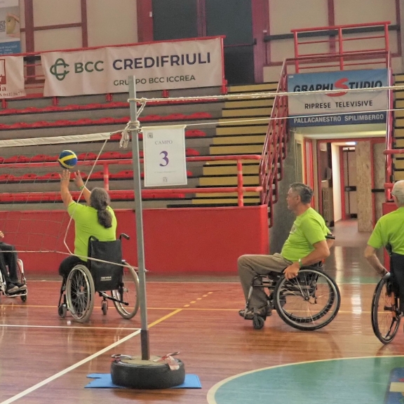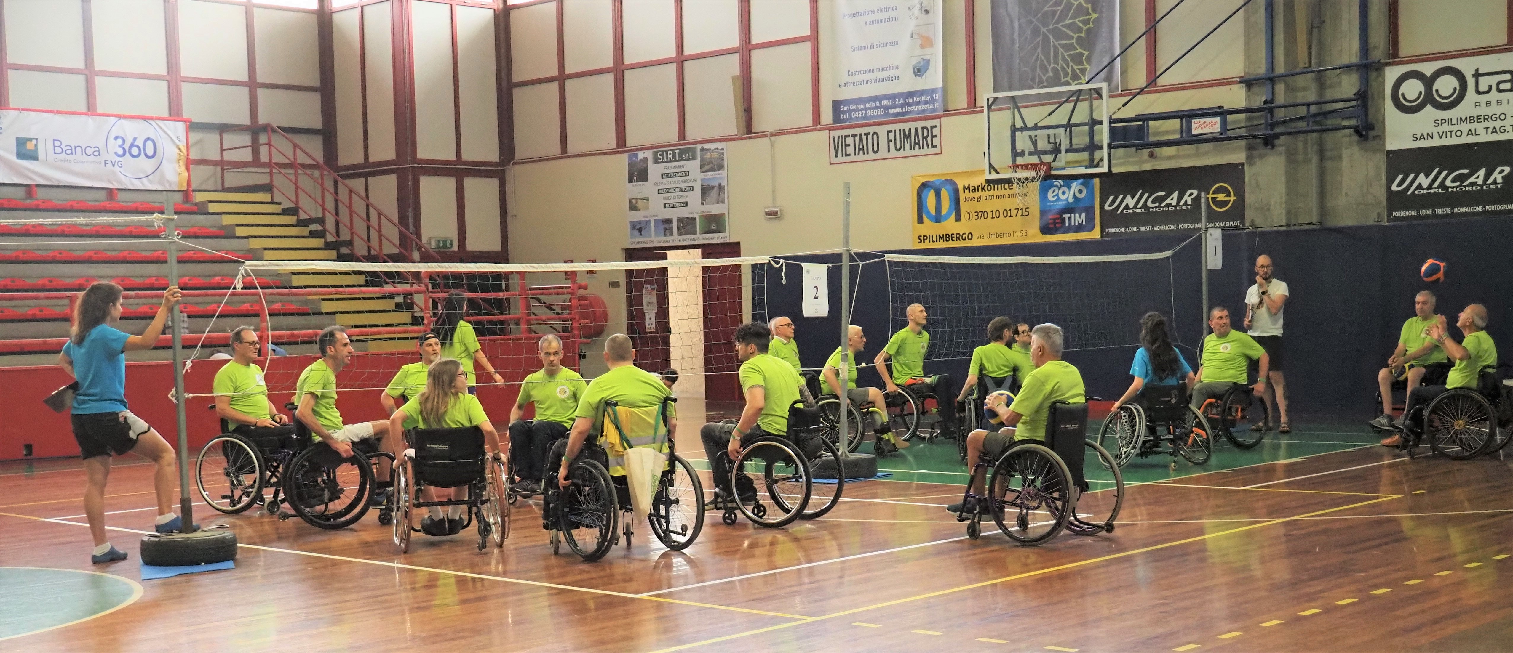 V soboto 15.6.2024 smo bili povabljeni v Spilimbergo. Spilimbergo je vas v deželi Furlaniji Julijski krajini v Italiji. Progetto Spilimbergo je ustanova kjer že vrsto let skrbijo za rehabilitacijo para in tetra-plegikov. Veliko poudarka dajejo športnemu udejstvovanju in zato se pri njih dogaja veliko športnih prireditev za paraplegike. Tokrat smo bili kot gostje iz Slovenije povabljeni na turnir odbojke na vozičkih, ki ga organizirajo že 16-to leto zapored. Odbojka na vozičkih je pravzaprav Italijanski izum in se je najbolj prijela prav v tem predelu Italije. Gre pa za različico odbojke za invalide, ki se v nasprotju s paraolimpijsko disciplino odbojke sede, kjer se igralci in igralke po igrišču premikajo oziroma drsajo po zadnjici, igra na invalidskih vozičkih in jo lahko igrajo tudi paraplegiki, ki po večini imajo oslabljene mišice trebuha in gluteusa in so pri sedeči odbojki kratko malo pozabljeni.