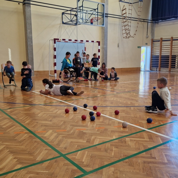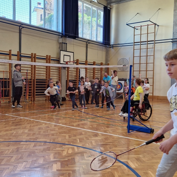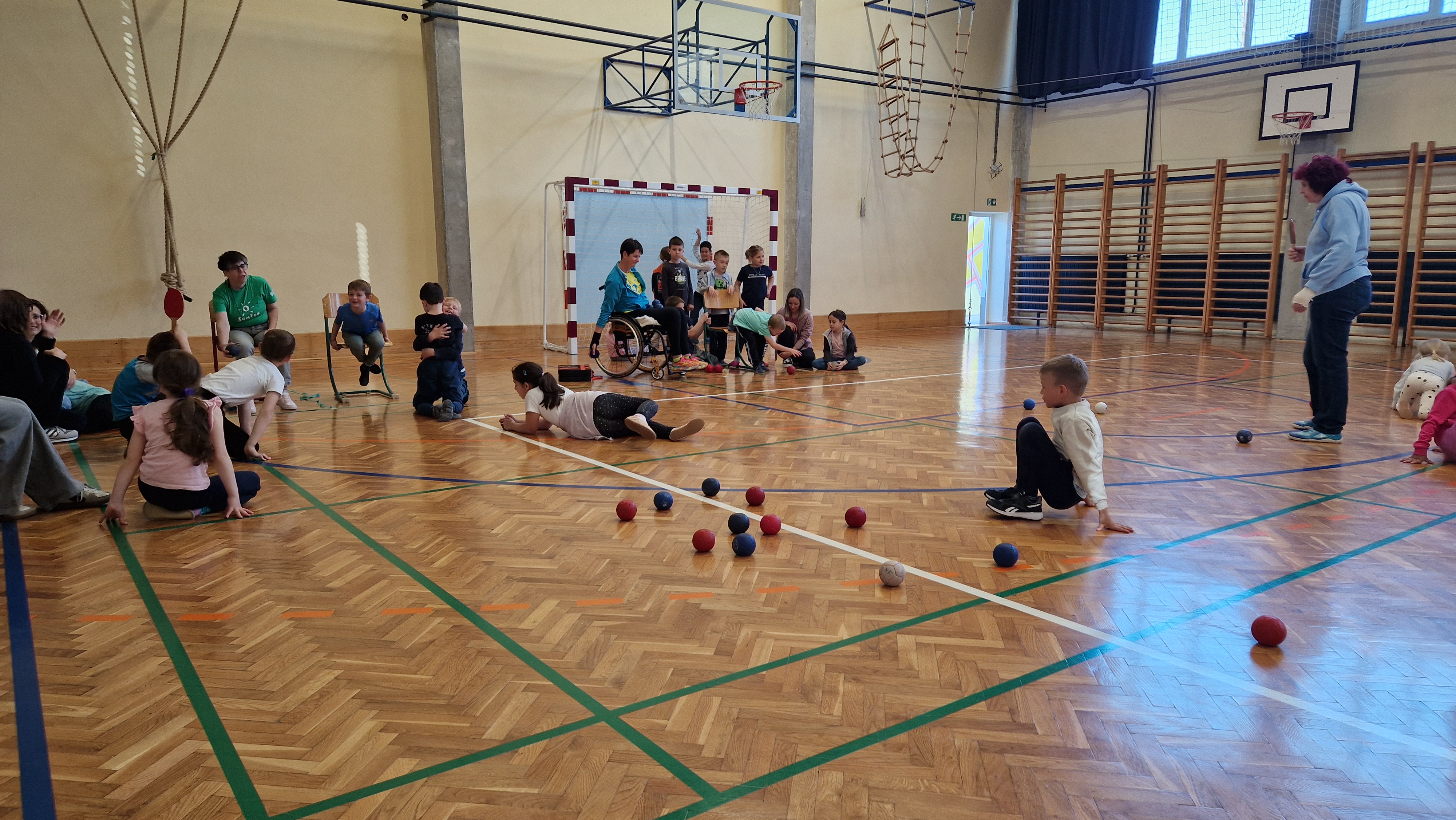 Učencem smo predstavili razne parašporte kot so paranamizni tenis, parabadminton, paralokostrelstvo in bocco- prilagojeno dvoransko balinanje.