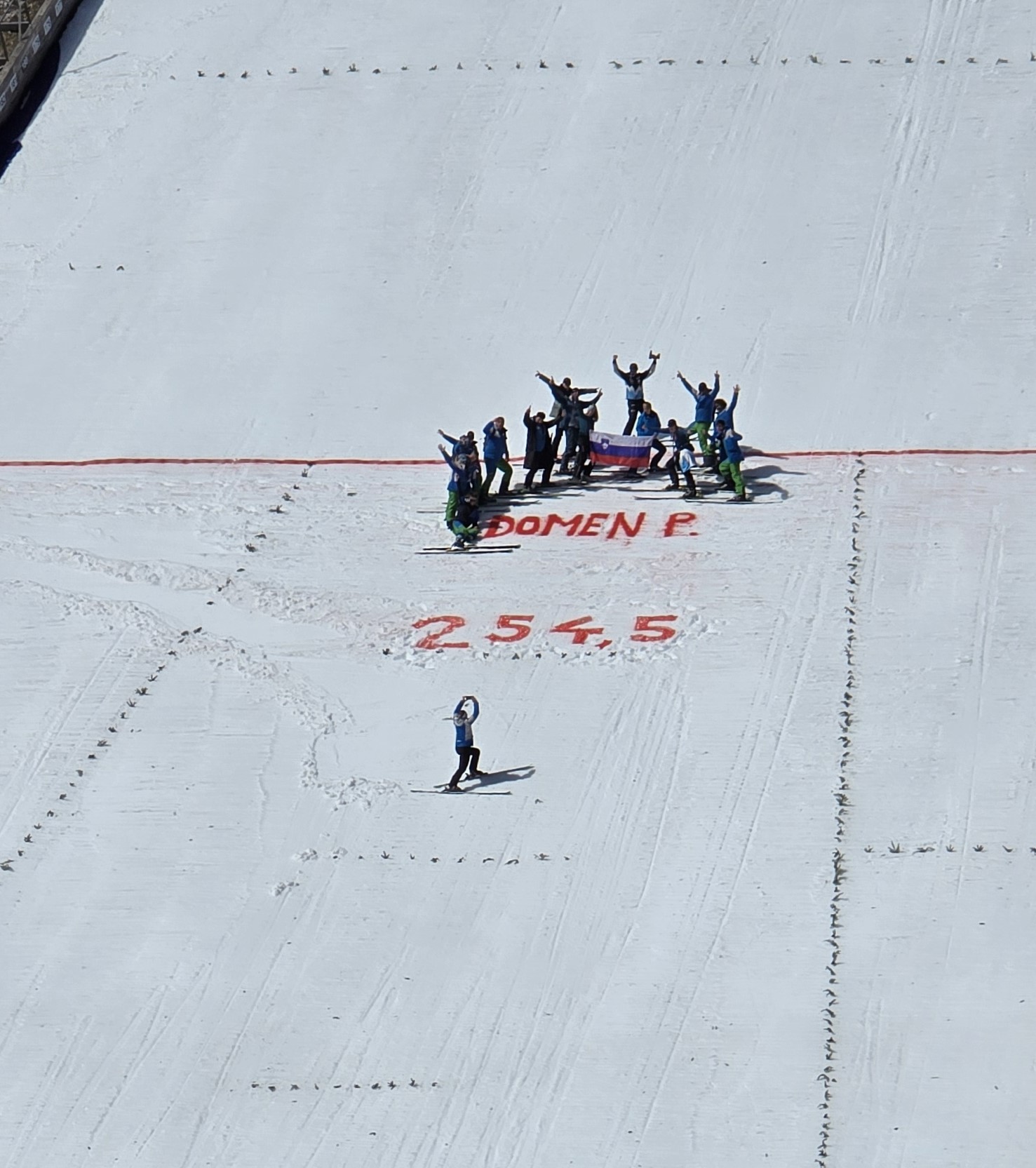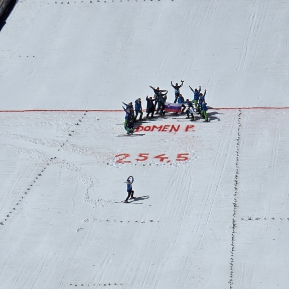 Domen Prevc je postavil nov svetovni rekord saj je pristal pri 254,5 m, tekmo pa je zmagal Anže Lanišek.