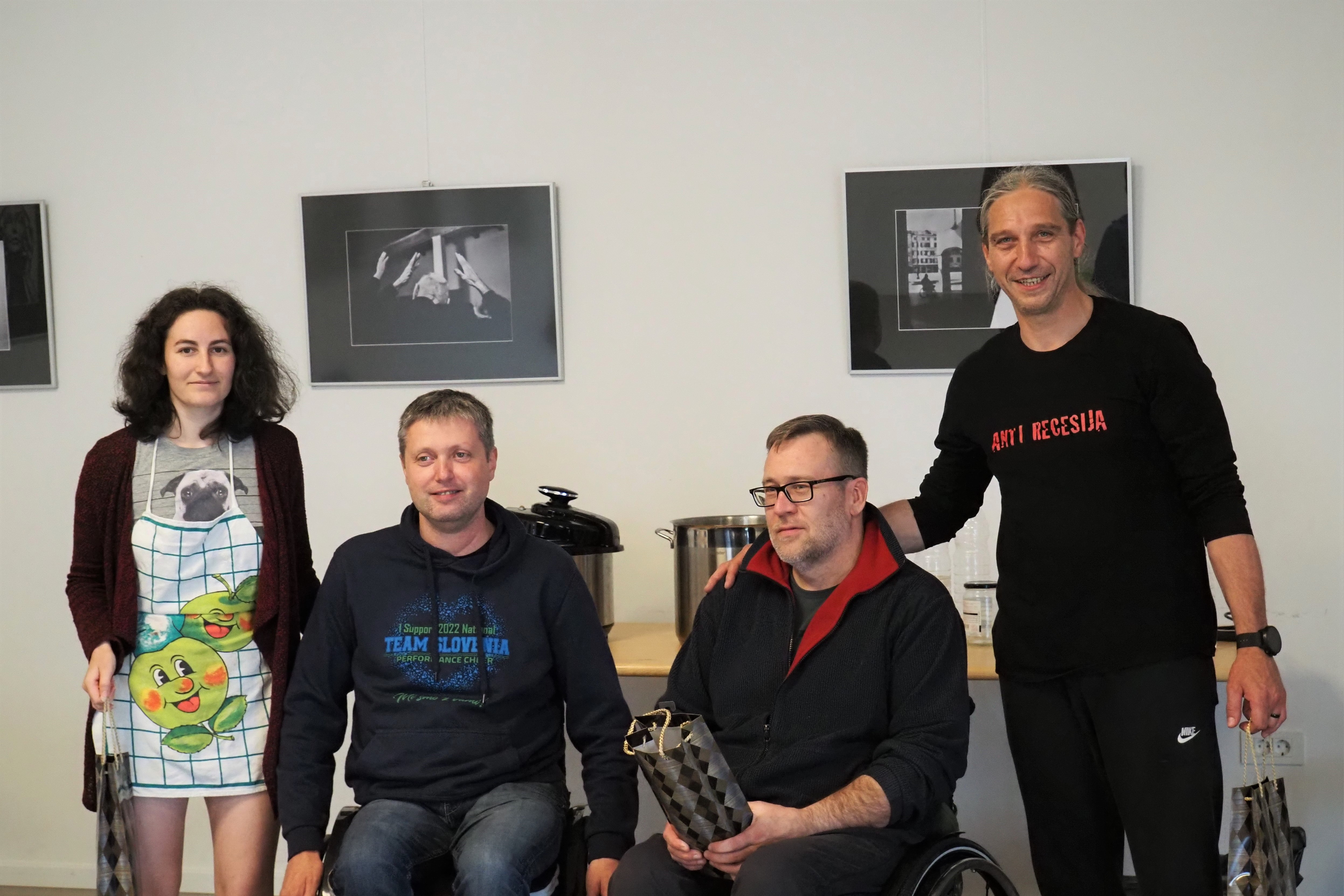 Štiričlanska komisija v sestavi Klavdij, Vladimir, Mile in moja malenkost, smo se posedli za mizo in čakali, da nam iz kuhinje prinesejo dobrote. Postavili smo se v vloge “domačih laičnih masteršefov”, ocenjevali krožnike, ki so bili označeni s številkami nevedoč katere pridne roke so to ustvarjale. Vsak od nas je podal svoje točke, te smo sešteli in dobili vrstni red. Vse tri so bile zelo dobre, vsaka na svoj način, zmagala pa je najboljša jota, ta ki se je najbolj približala okusu prave primorske jote. Glavno nagrado si je prisvojila ekipa sestavljena iz naših dveh članov Davida in Mateja. Druga je bila jota, ki jo je kuhala Teja, hči našega predsednika, tretja dobrota pa je nastala izpod rok našega Marvina. Vsem še enkrat čestitke in zahvala, da ste nas pogostili s pristnostjo domačih dobrot. Seveda smo po končani razglasitvi rezultatov vsi prisotni razveselili naše borbončice in uživali v joti!