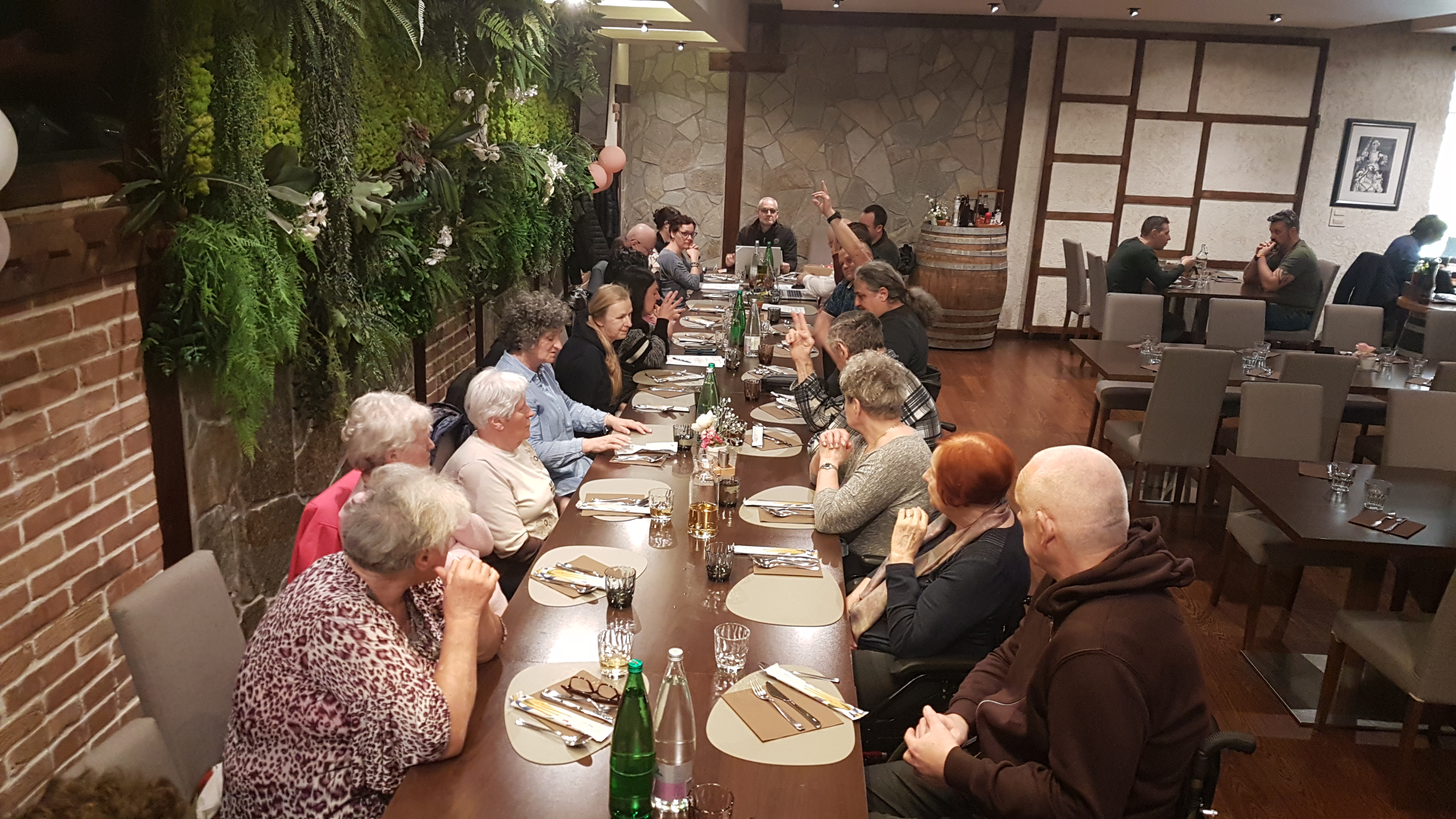Vsakoletni zbor članov Društva paraplegikov severne Primorske v petek 20.3.2026 smo letos zaradi pogreba našega člana Jankota prestavili v dopoldanski termin, natančneje na 10:30h. Skupaj 17 članov in nekaj spremljevalcev ter predsednik Zveze paraplegikov Slovenije Dane Kastelic in strokovna sodelavka Brigita Erjavec Škrbina se nas je tako kot že nekaj let zapored zbralo v prostorih restavracije Magma X. Ker statut veleva, da v primeru, ko ni zagotovljena potrebna 50% udeležba, se počaka pol ure in nato se zbor članov nadaljuje. Teh trideset minut čakanja je minilo še prehitro saj smo v tem času imeli predstavitev električnega priklopa za voziček Klaxon, ki so nam ga podrobno razkazali in predstavili predstavniki podjetja Soča oprema. Po pretečenih zajetnih 30 minutah se je zbor članov lahko začel. Po uvodnih pozdravnih besedah predsednika društva Sebastjana Ferfolje smo se z minuto molka spomnili na preminule člane. Nato je besedo prevzel predsedujoči Zboru članov Vladimir Peterlin, ki je po točkah dnevnega reda povabil vse predsednike komisij, da so podali svoja poročila, ki jih je kasneje Zbor članov tudi potrdil. Sledil je nagovor predsednika ZPS Daneta Kastelic, ki je skupaj s sodelavko Brigito predstavil poročilo za leto 2025, programe, ki se v okviru zveze izvajajo, novosti in zanimivosti. Vse člane je povabil naj se v čim večjem številu udeležijo obnovitvene rehabilitacije, ter opozoril naj bomo pozorni na objavo razpisa v reviji Paraplegik. Tudi letos se bo izvajala v domu paraplegikov v Pacugu ter zdraviliščih Laško in Radenci. V domu Pacug bo tako kot lani na voljo tudi terapija s CO2 in botulinom. Temu je sledilo še nekaj uradnih točk dnevnega reda, od programa dela do višine članarine ter točka razno. Predsednik pove, da smo v lanskem letu v društvo sprejeli kar 9 novih članov, kar je precej zaskrbljujoče. Člane opozori naj bodo pozorni na objave v Občasniku, kjer se redno objavlja vabila na naše aktivnosti in v prihajajočih mesecih jih bo kar nekaj. Vse člane prijazno povabi, da naj se v čim večjem številu udeležujejo naših dejavnostmi. S tem se je zaključil tudi uradni del našega zbora. Sledilo je okusno kosilo in prijeten klepet med udeleženci.